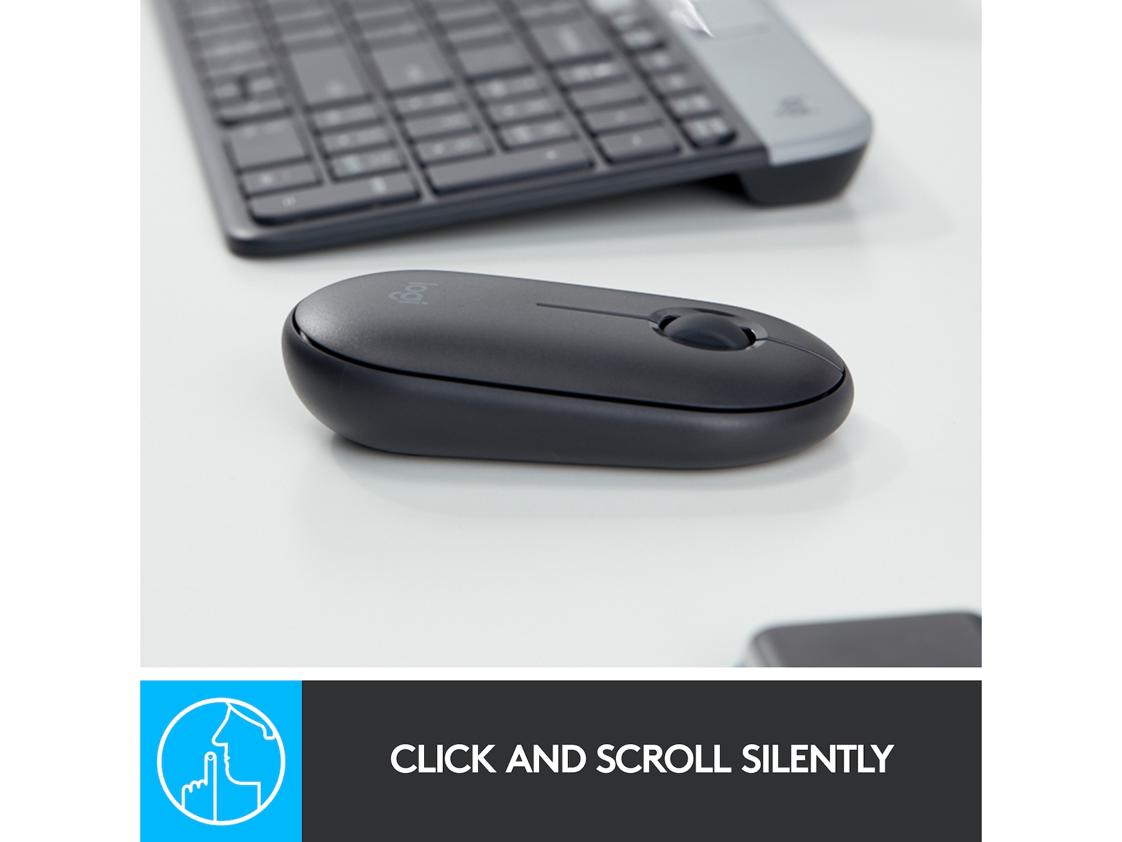 Logitech Pebble M350 sporer hurtigt og præcist uanset om den bruges på et bord på din yndlingscafé eller oven på din seng.