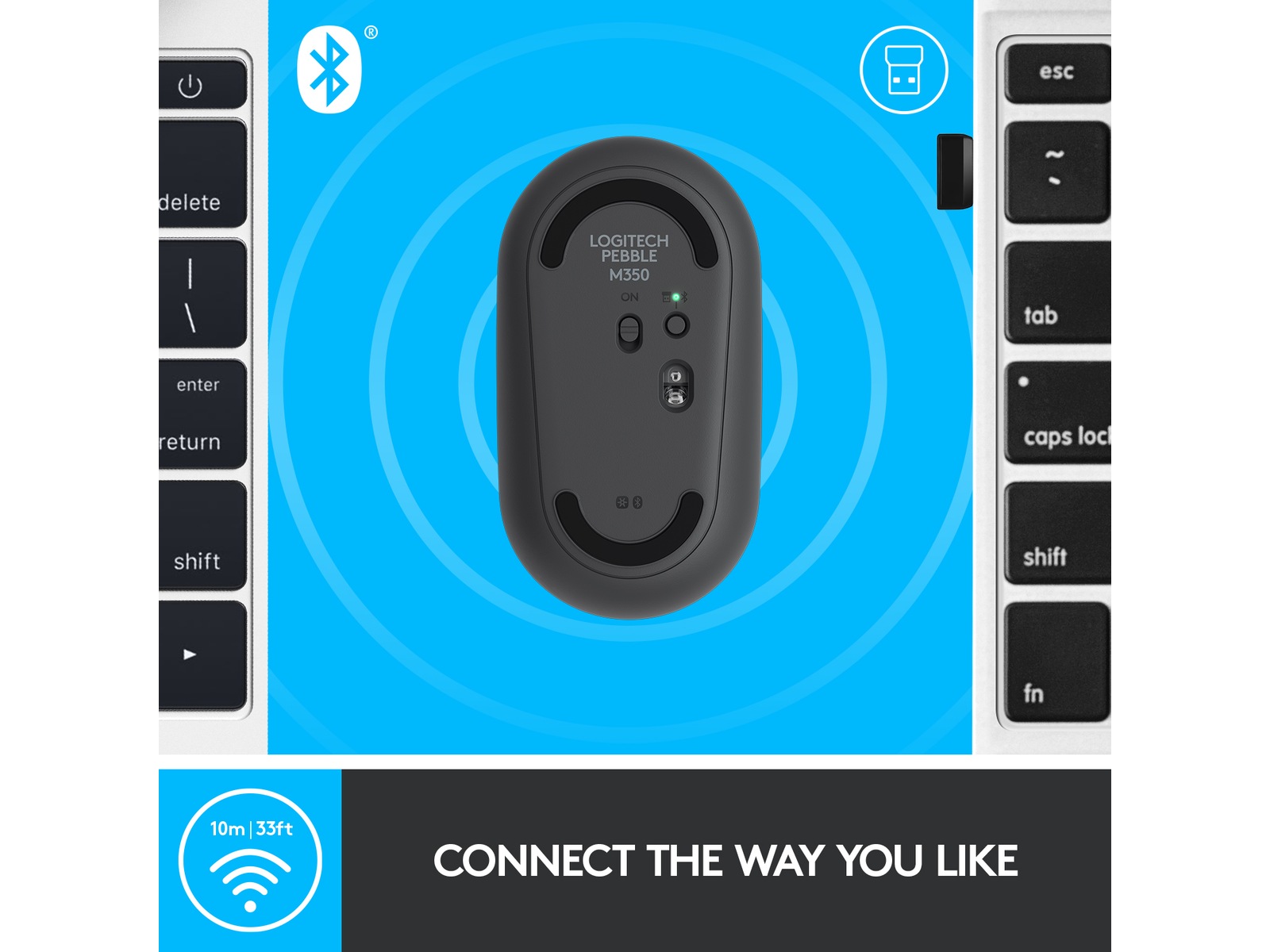 Vælg Logitech Pebble M350 i off-white, grafit, rosa, så den passer til resten af dig.