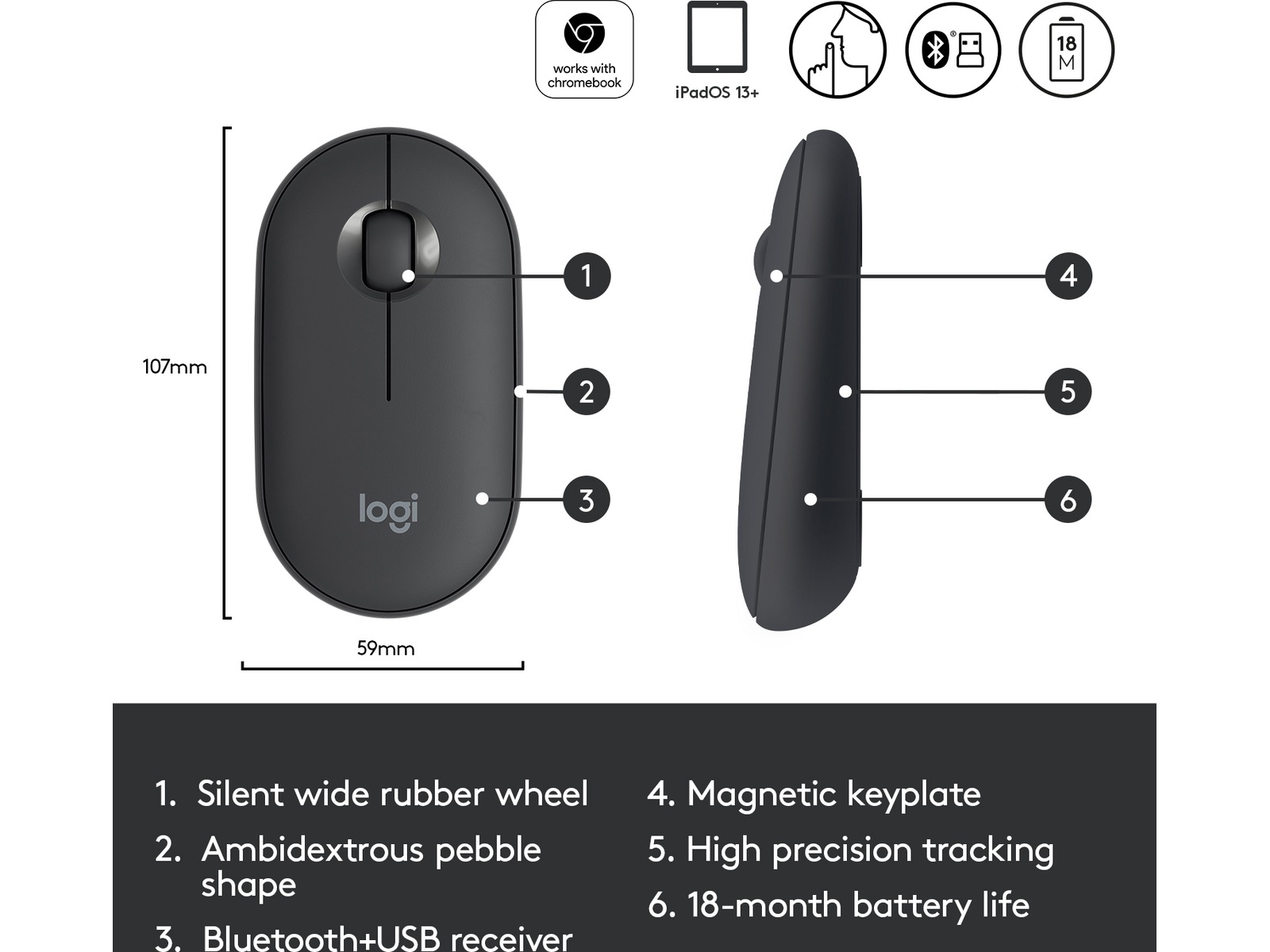 Logitech Pebble M350 passer med sit moderne design perfekt til din helt egen livsstil, den ser godt ud på dit skrivebord og er slank nok til at ryge i tasken og komme med på café.