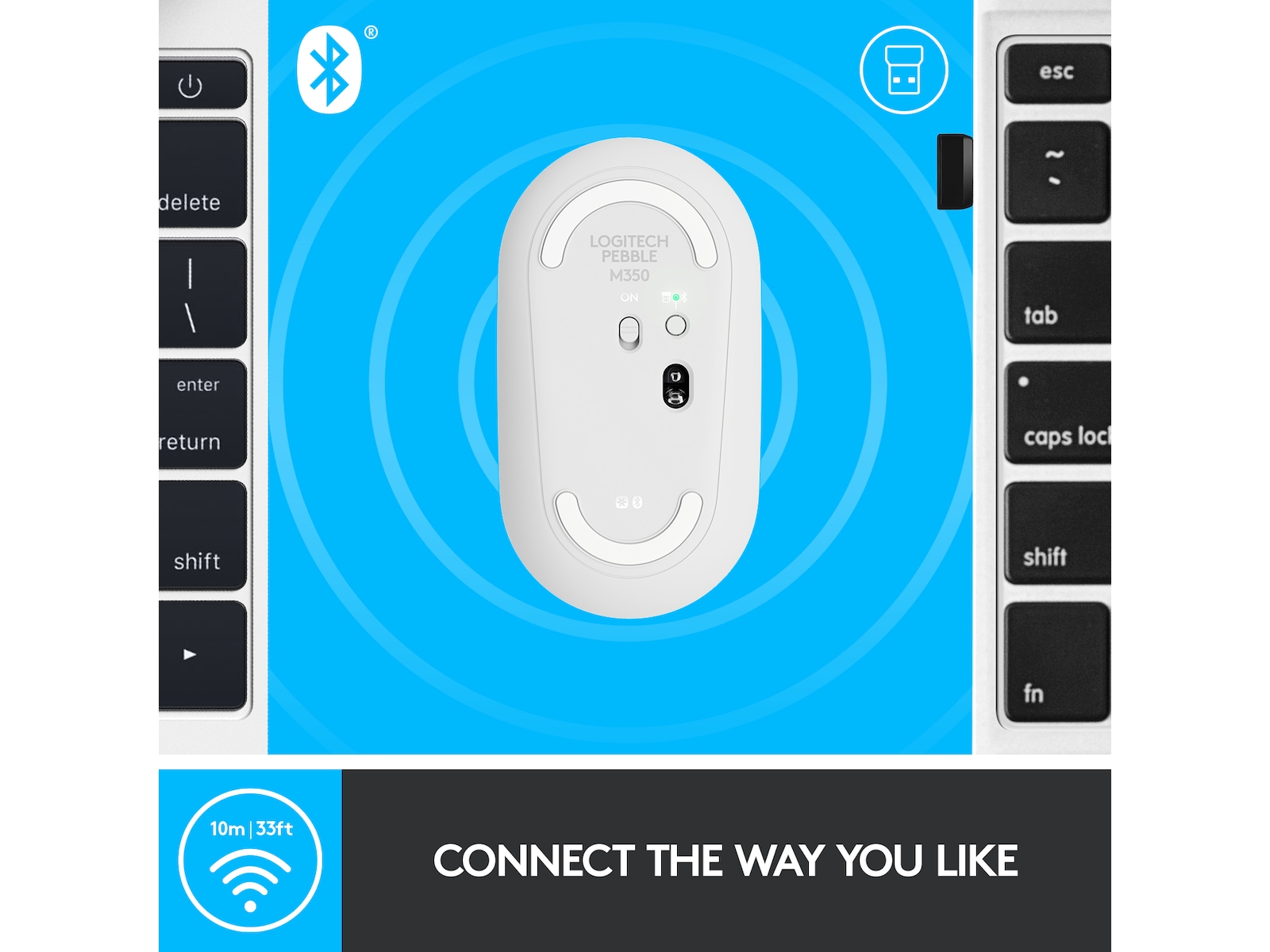 Vælg Logitech Pebble M350 i off-white, grafit, rosa, så den passer til resten af dig.