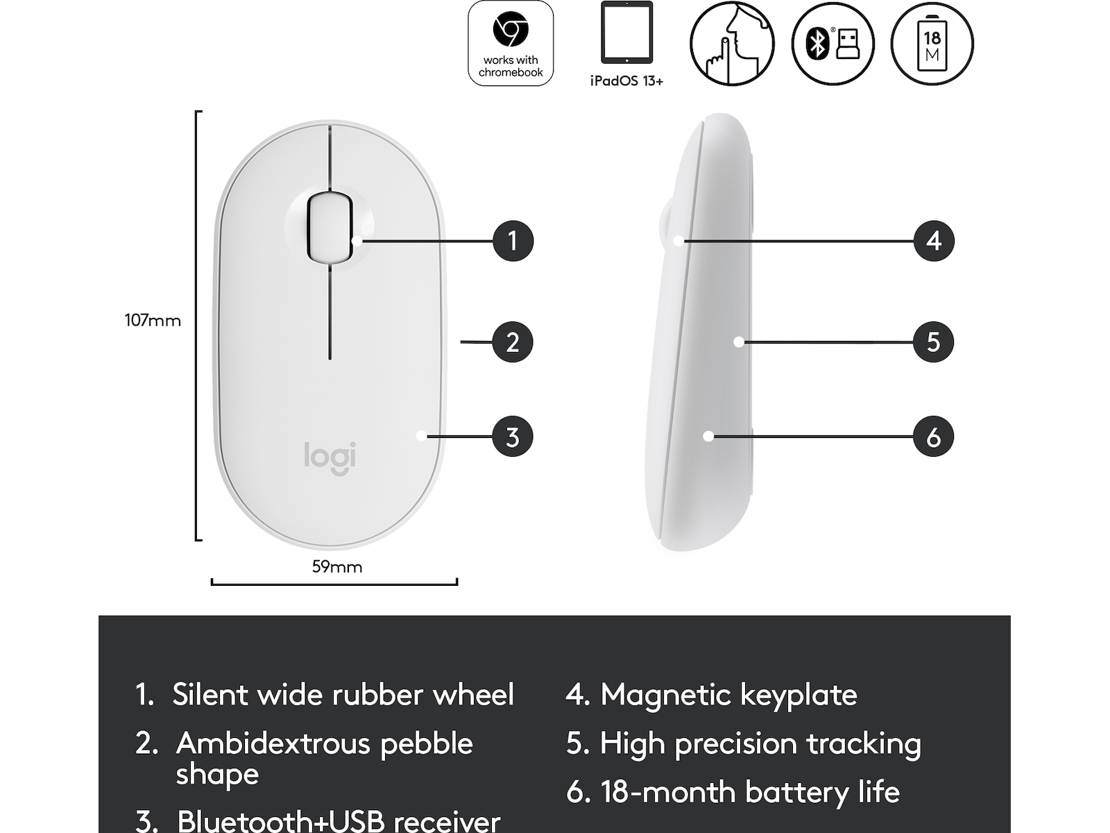 Logitech Pebble M350 passer med sit moderne design perfekt til din helt egen livsstil, den ser godt ud på dit skrivebord og er slank nok til at ryge i tasken og komme med på café.