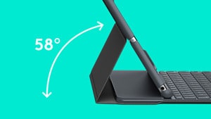 I skrivetilstand holder SLIM FOLIO din iPad i en vinkel på 58°. Det er perfekt til at klare opgaverne på ingen tid. Fold etuiet for at få display-tilstand, og SLIM FOLIO holder din iPad i en 10° vinkel, der er mere behagelig, når du ser på dine yndlingsapps.