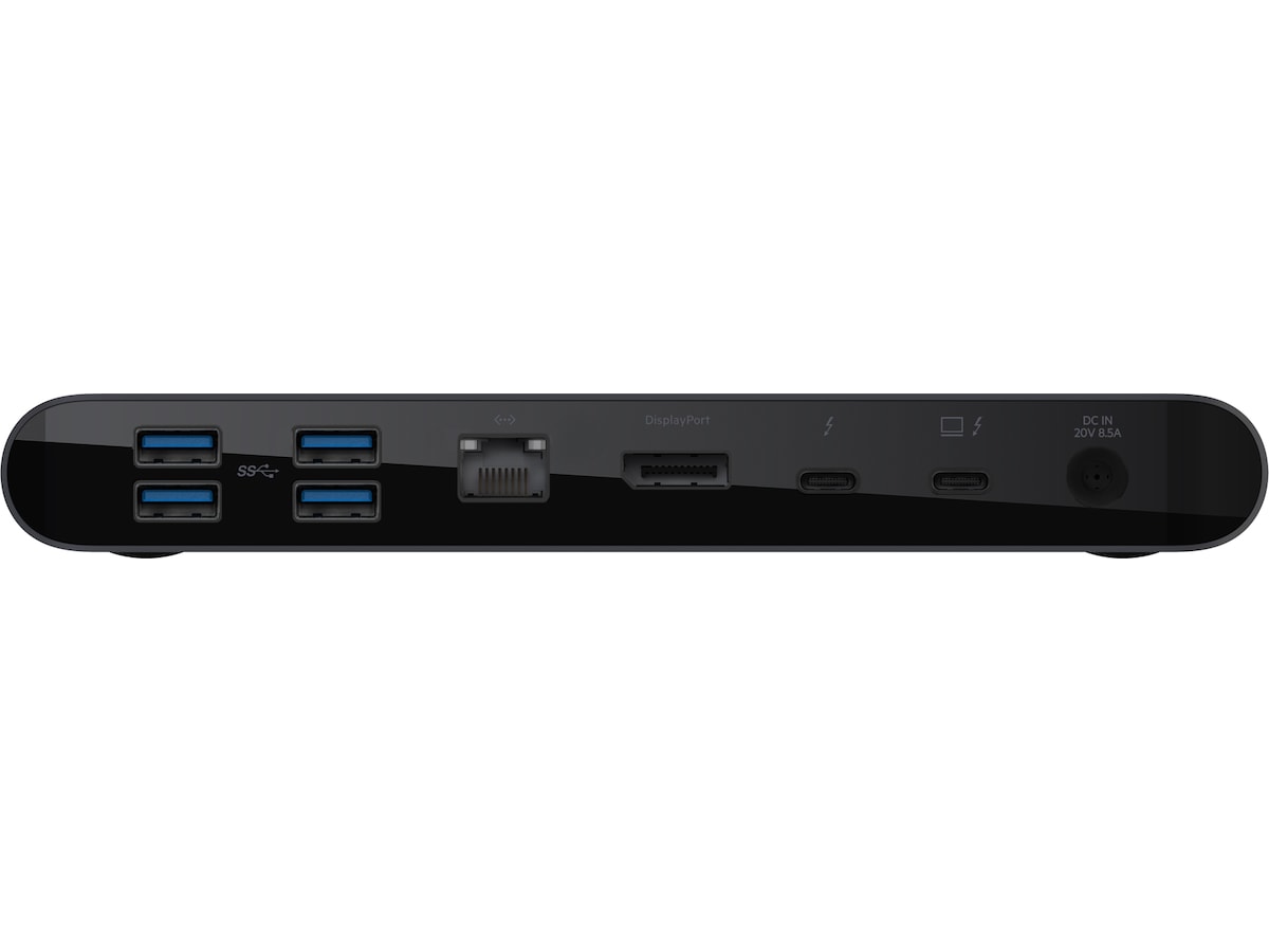 | Interface | 1 x netværk - 10Base-T/100Base-TX/1000Base-T - RJ-45, 1 x USB-C 3.1 Gen 2 - 24 pin USB-C, 1 x USB-C / Thunderbolt 3 - 24 pin USB-C, 1 x USB 3.1 Gen 1 - 9 pin USB Type A, 1 x lyd - hovedtelefoner/mikrofon - minitelefon 3,5 mm, 1 x skærm/video - 20 pin DisplayPort, 4 x SuperSpeed USB 3.0 - 9 pin USB Type A |