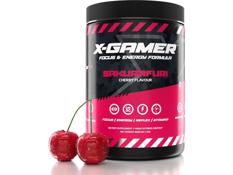Kraft til sejr med en 600 g fokus- & energibooster i den lækre Sakurafuri-smag fra X-Gamer. Vores bedste formel nogensinde kombineret med en utrolig ny smag er en avanceret, innovativ og kraftfuld energigivende drink, der udelukkende er formuleret til e-sports, semiprofessionelle og entusiastiske spillere. X-Gamer indeholder også en 27 Multi-Vitamin blanding, der hjælper med at beskytte din krop, Nootropic Amino's til at skærpe sindet, og den er uden sukker, samtidig med den kun indeholder 31 K-cals pr. 500 ml servering.