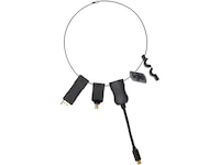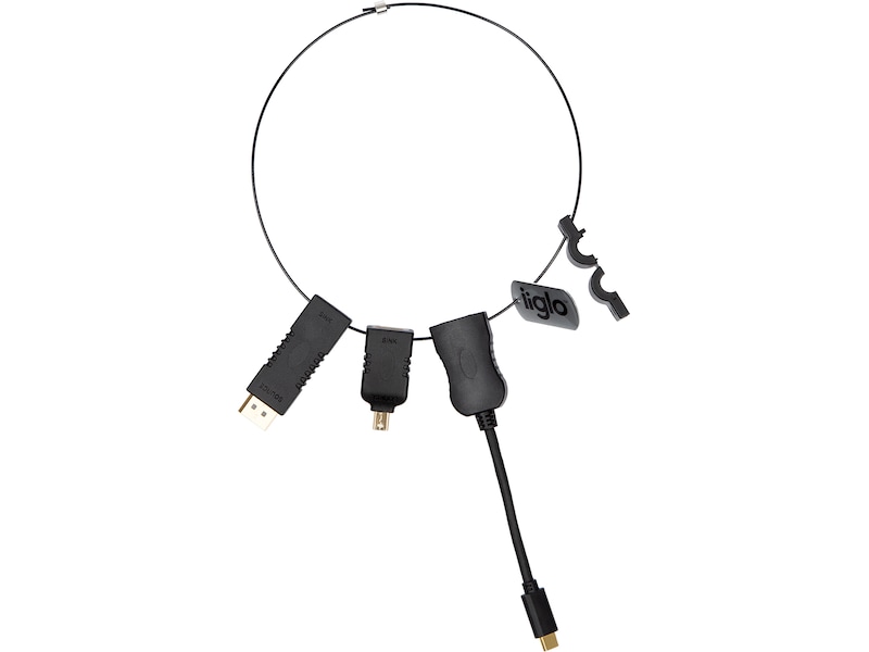 Træt af at rode med ledninger og oprette forbindelse til projektor og TV i mødelokalet? Med iiglo AV-adapterbundt har du altid kontrol og kan nemt oprette forbindelse fra HDMI-hunstik til USB C, Displayport og miniDisplayport. Bundtet fastgøres let til HDMI-kablet med det medfølgende værktøj for at sikre, at kablerne ikke forlader mødelokalet.