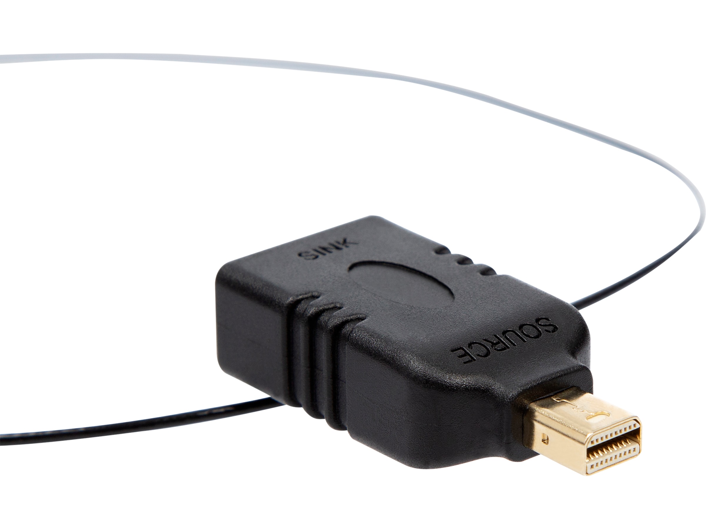 Adapterbundtet har tre overgange fra HDMI-hunstik til USB C, Displayport og miniDisplayport.