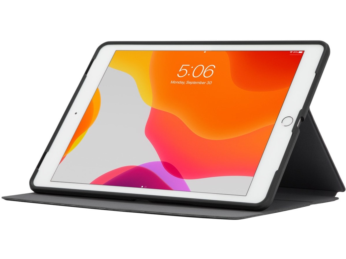 Pak din iPad® (7. gen.) ind 10,2 tommer med faldbeskyttelse ii stærk, militærklasse*. Targus Click-In™ -etuiet er konstrueret til holdbarhed uden at tilføje vægt og har en fleksibel bakke med omviklings-ramme og forstærkede hjørner for at afværge stød og slag.