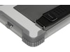 Lydscoops, der er indbygget i kabinettet omkring enhedens højttalere, forbedrer og dirigerer lyden mod dig. For ekstra alsidighed inkluderer etuiet et integreret glidende stativ til landskabsvisning og skrivepositioner samt en valgfri, aftagelig håndstrop og skulderrem.