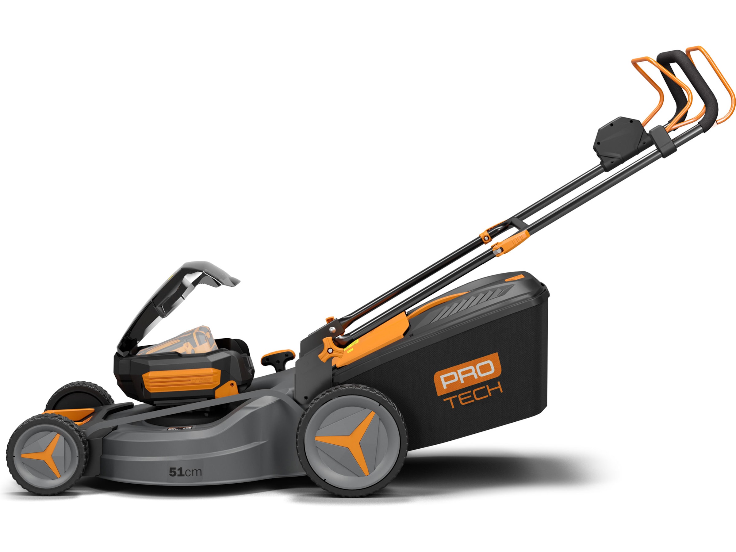 Skærebredde 51 cm og med mulighed for at klippe i 6 forskellige højder. Protech græsslåmaskine er selvkørende og har bakhjulstræk. Det robuste ståldæksel og den børsteløse motor giver lave støjniveauer og effektiv klipning.