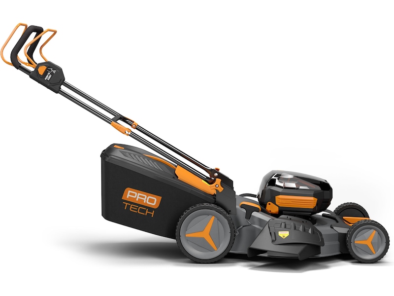 Du kan vælge mellem 3 forskellige klippemetoder; med opsamler, sideudkast eller med bioklip. Du kan justere klippehøjden centralt (6 forskellige højder), og plæneklipperen er let at opbevare, da du kan folde håndtaget ned og stille plæneklipperen i lodret position. Takket være det medfølgende +62 Volt 5.0 Ah batteri, kan du bruge batteriet til andre Protech+ 62 Volt redskaber i serien. Den leveres også med batterioplader i pakken. Maskinen passer til græsplæner, der er større end> 200 m2.