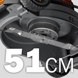 Denne maskine har en god skærebredde på 51 cm. Maskinen har 6 klippehøjdejusteringer fra 25 mm til 75 mm