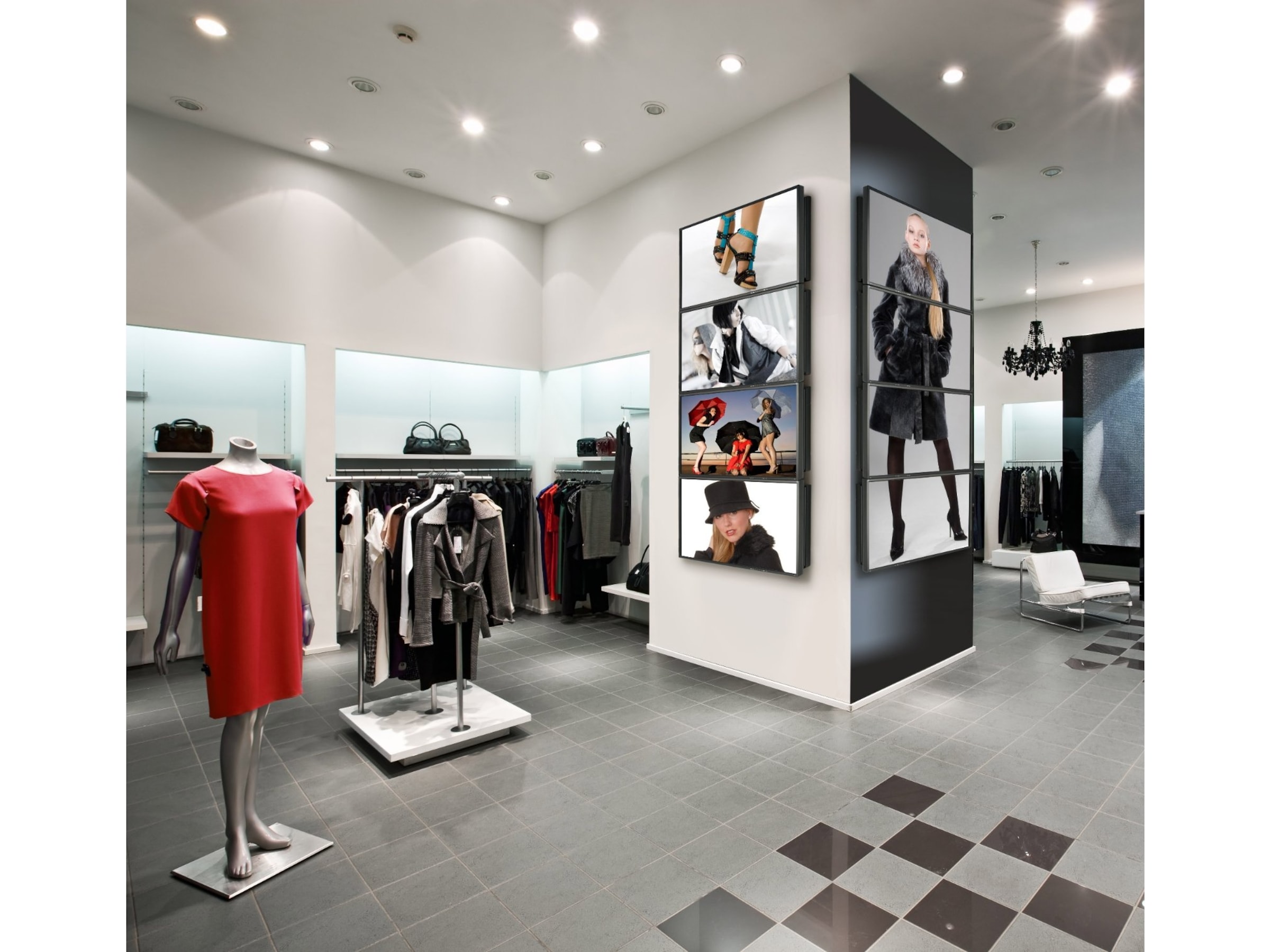 - Skærme og monteringer sidder direkte på væggen for at få en ren profil