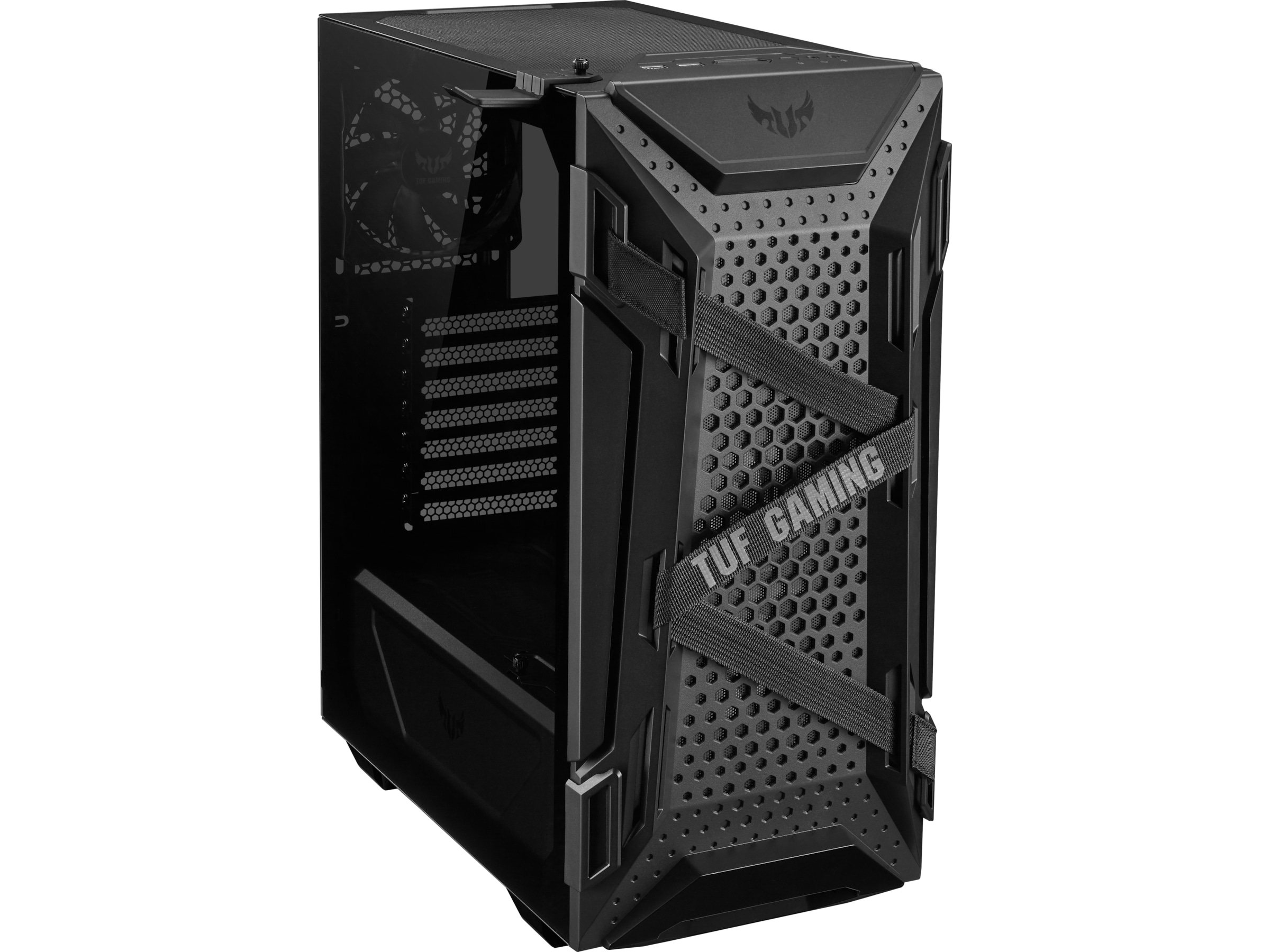 ASUS TUF Gaming GT301 ATX mid-tower compact case with tempered glass side panel, honeycomb front panel, 120mm AURA Addressable RGB fan, headphone hanger and 360mm radiator support.