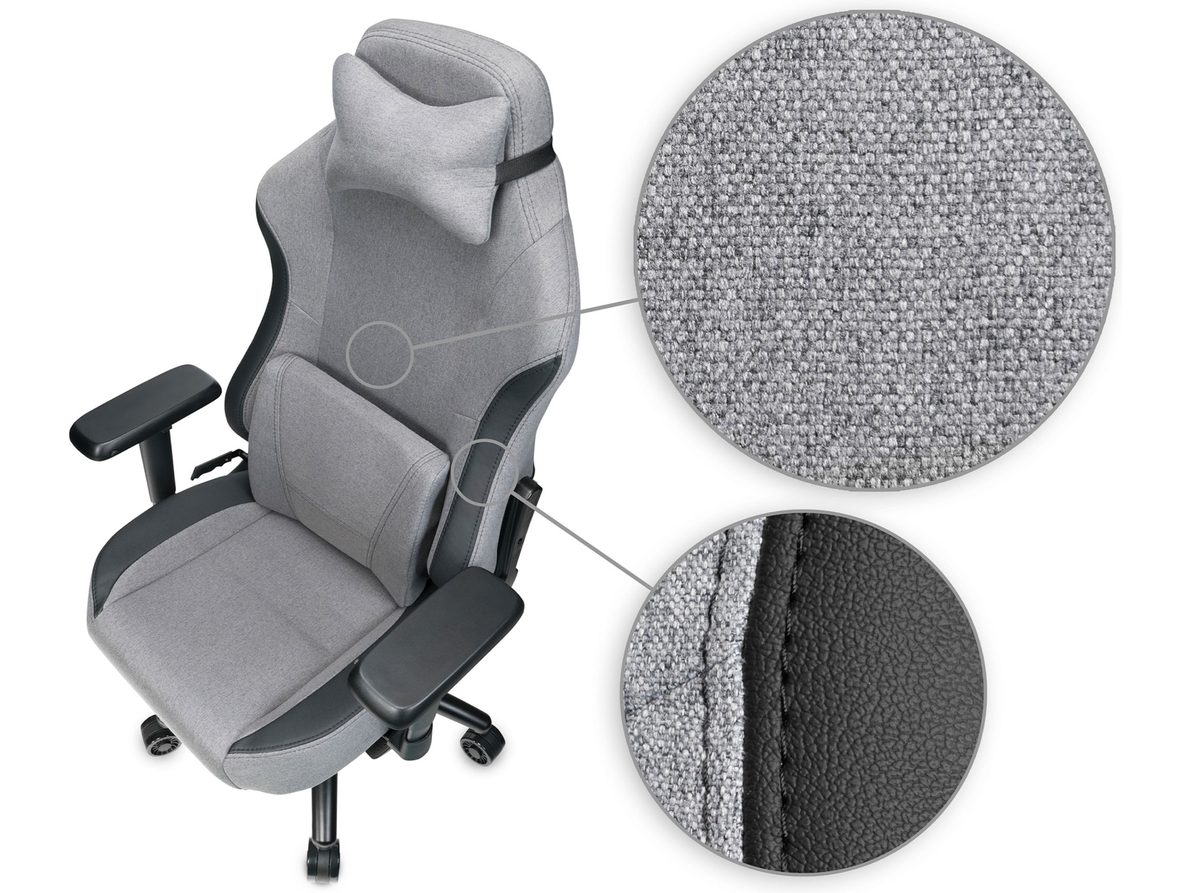 Den matchende nakke- og rygpude med memory-skum gør stolen ekstra behagelig, og de er nemme at fjerne eller skifte om ønsket. Designet til at give ekstra støtte til nakken og korsryggen, så du kan sidde mere ergonomisk.