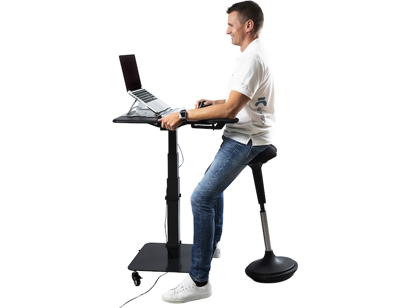 GetUpSit er en god balancestol med stor højdejustering, der giver dig støtte i overgangen mellem siddende og stående stilling. Stolens skålformede fod med skridsikker belægning betyder, at bevægelsen starter helt nede ved gulvet og dermed giver stor bevægelsesfrihed og variation i siddestilling. Ryg- og mavemusklerne trænes således automatisk med en mere aktiv siddestilling. Ved at sidde med hofterne i en mere åben position og rette din ryg, får du en øget iltoptagelse sammenlignet med at sidde på en almindelig stol.