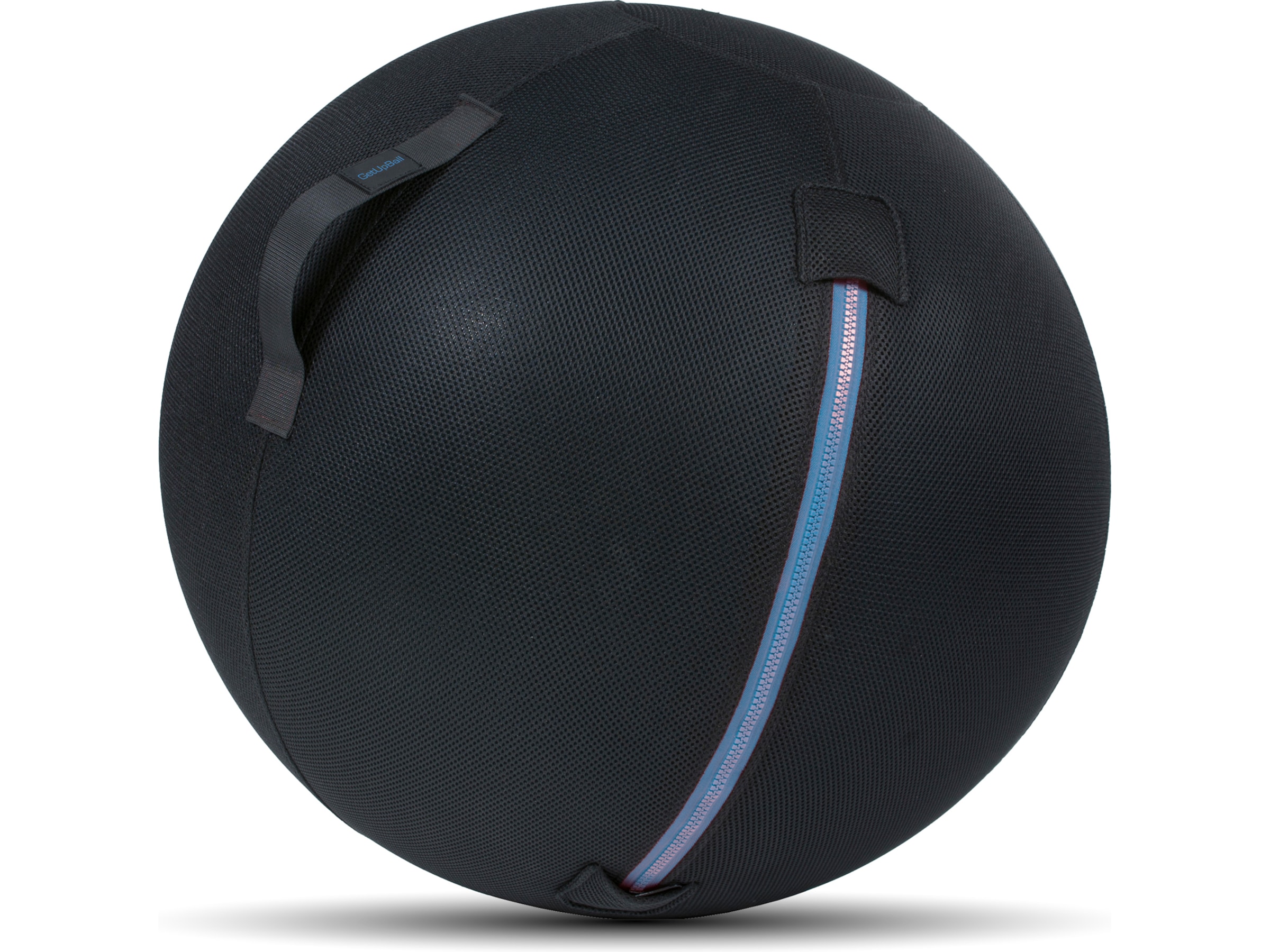 GetUpBall er lavet af behageligt polyesterstof. Den nederste del af betrækket på GetUpBall er lavet af skridsikkert materiale, der gør kuglen stabil at sidde på, og da kuglen er fyldt med 0,5 kg. står den stabilt. Betrækket er udstyret med en lynlås, der gør det let at tage betrækket af for rengøring. GetUpBall er udstyret med et praktisk greb, der gør det nemt at flytte kuglen og den leveres med en luftpumpe, som du nemt kan puste den op.