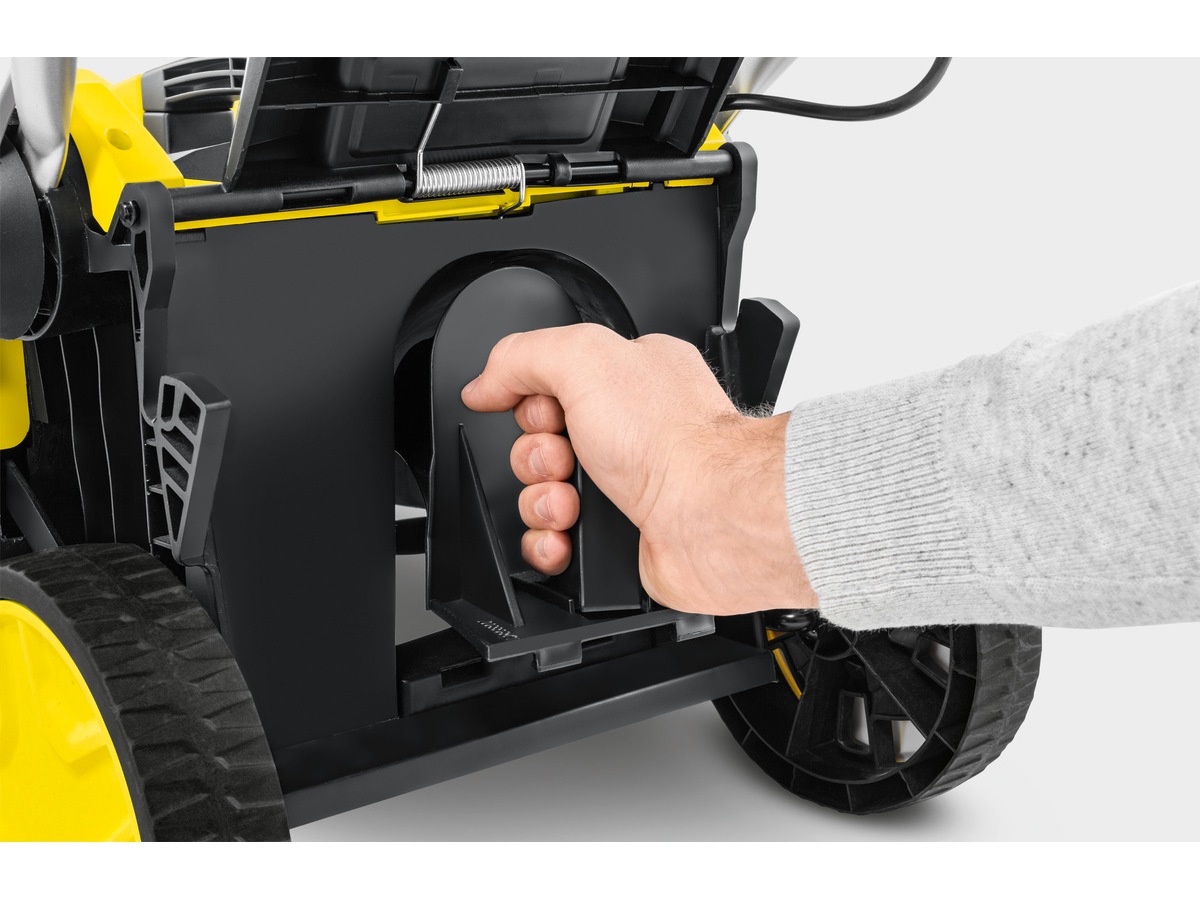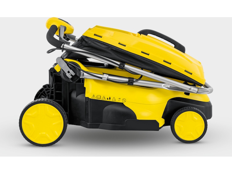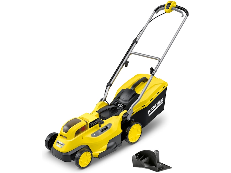 Kärcher LMO 18-36 er en ledningsfri plæneklipper, der er designet til at gøre det let at opnå en perfekt klippet græsplæne. Med sin 36 cm skærebane og fire forskellige skærehøjder giver den dig pæne resultater, mens den er behagelig at bruge takket være det justerbare håndtag. Denne slåmaskines kloge 2-i-1-klippesystem betyder, at du kan beslutte, om du skal gøde din græsplæne naturligt med det klippede græs eller fange det afskårne græs i den 45-liters græsfangerboks. En praktisk indikator for påfyldningsniveau viser dig, når du skal tømme græsbeholderen. En sikkerhedsnøgle betyder, at den ikke kan startes ved et uheld, mens foldehåndtaget og den sammenfoldelige græsfangerboks betyder, at den ikke tager meget plads i skuret eller garagen.