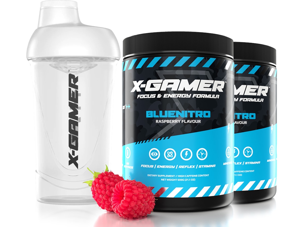 Kraft til sejr med en 600 g fokus- & energibooster i den lækre Bluenitro-smag fra X-Gamer. Vores bedste formel nogensinde kombineret med en utrolig ny smag er en avanceret, innovativ og kraftfuld energigivende drink, der udelukkende er formuleret til e-sports, semiprofessionelle og entusiastiske spillere. X-Gamer indeholder også en 27 Multi-Vitamin blanding, der hjælper med at beskytte din krop, Nootropic Amino's til at skærpe sindet, og den er uden sukker, samtidig med den kun indeholder 31 K-cals pr. 500 ml servering.
