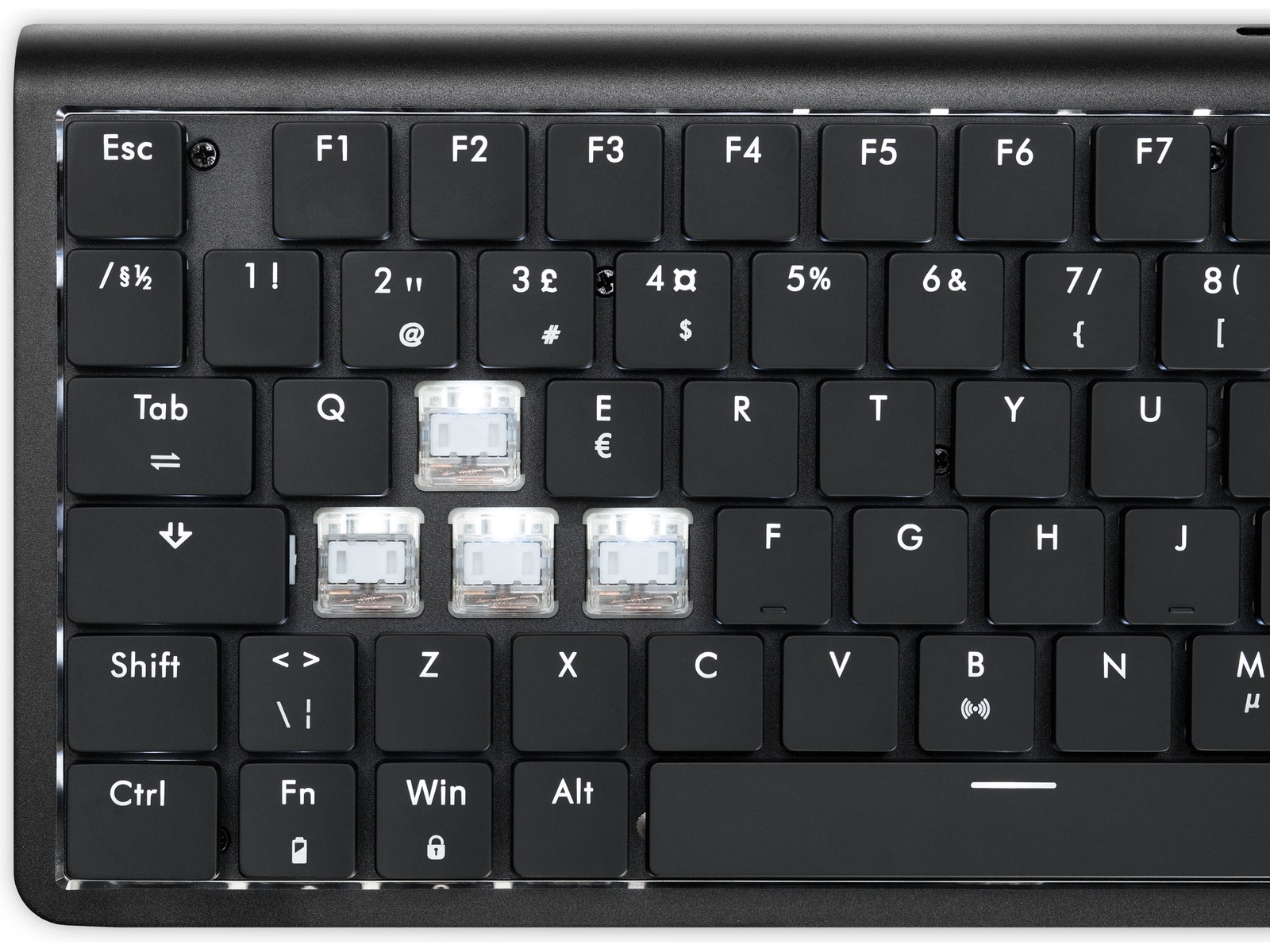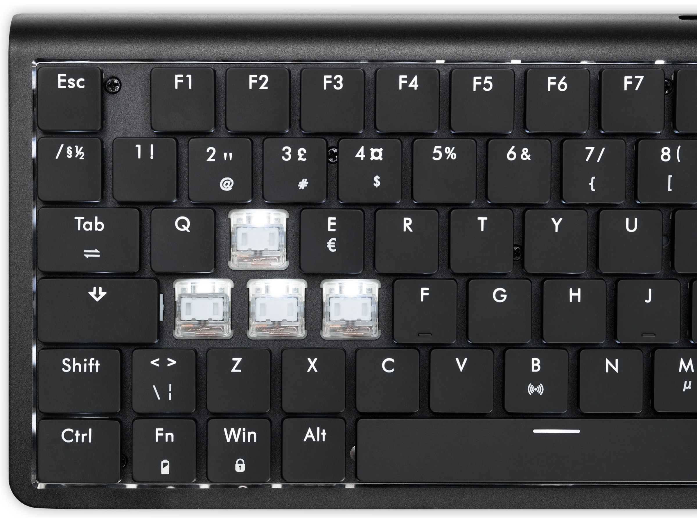 Det slanke, praktiske design i dette gamingtastatur gør det til en perfekt tilføjelse til din opsætning derhjemme eller på farten, hvilket giver dig et pænt og organiseret skrivebord overalt. Det har mekaniske switche og taster med lav profil, hvilket giver dig en kortere aktiveringsafstand og et lavere aktiveringspunkt sammenlignet med de traditionelle mekaniske switche.
