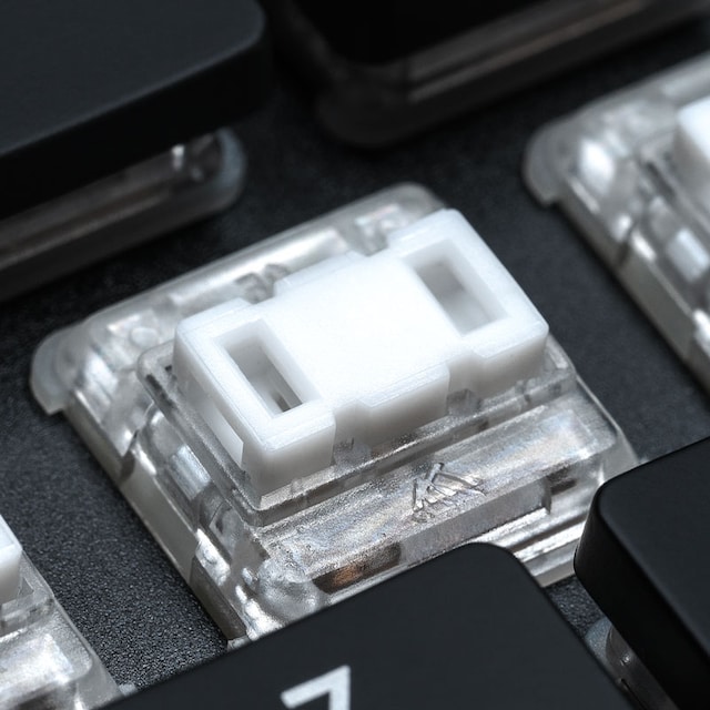 Den hvide switch med lav profil giver en kliklyd ved hvert tastetryk, hvilket giver dig betydelig hørbar og taktil feedback. Denne type tast kræver 50 g aktiveringskraft og har en højere nulstillingsposition. Med en levetid på 70.000.000 tastetryk er disse switches bygget til pålidelighed og ydeevne i mange år frem.