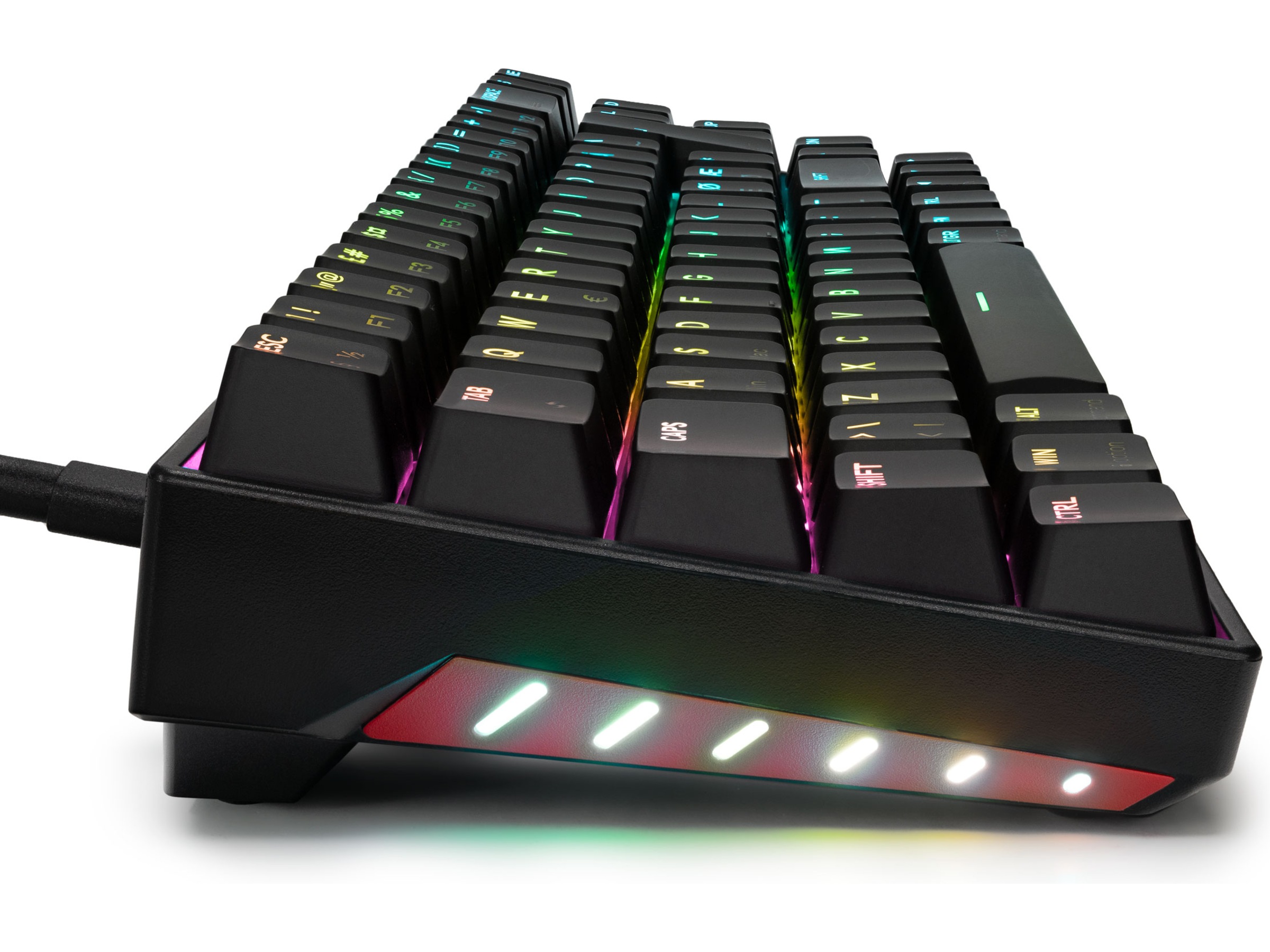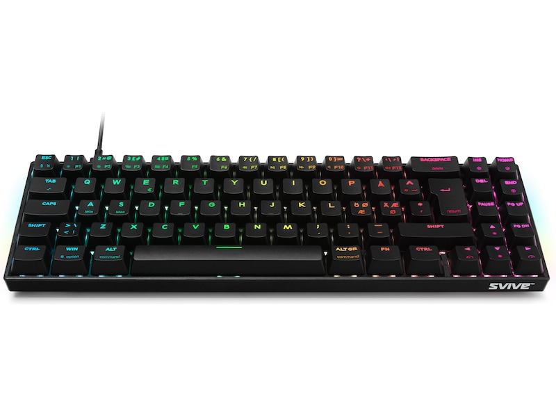 Udstyret med røde lineære switches giver dette tastatur dig jævne tastetryk. Det er cirka 70% af bredden på et tastatur i fuld størrelse, hvilket gør det meget praktisk og kompakt ved at reducere mellemrum mellem forskellige områder. Svive Gaming er lavet af nordiske spillere og giver dig kun det bedste tilbehør i esportsstandarder.