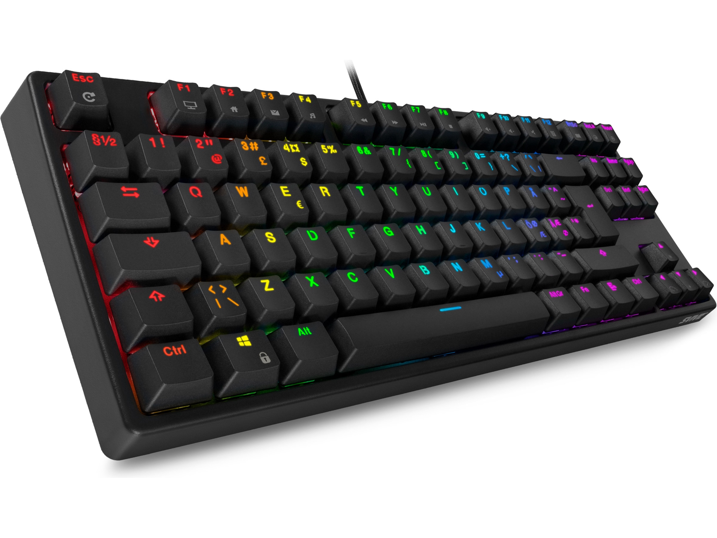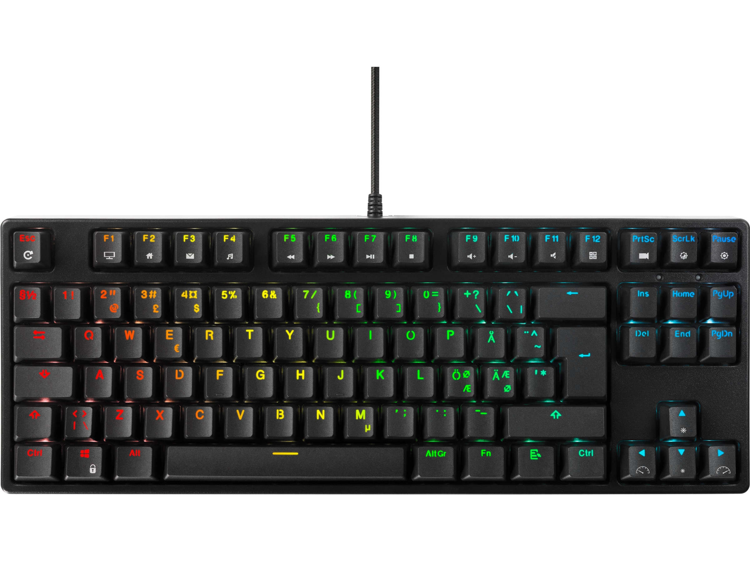 Dette tastatur er tenkeyless (TKL), hvilket betyder, at det ikke har det numeriske tastatur, hvilket gør det meget praktisk og kompakt. Det har et nordisk layout og integrerede multimedietaster i et ergonomisk, minimalistisk design.