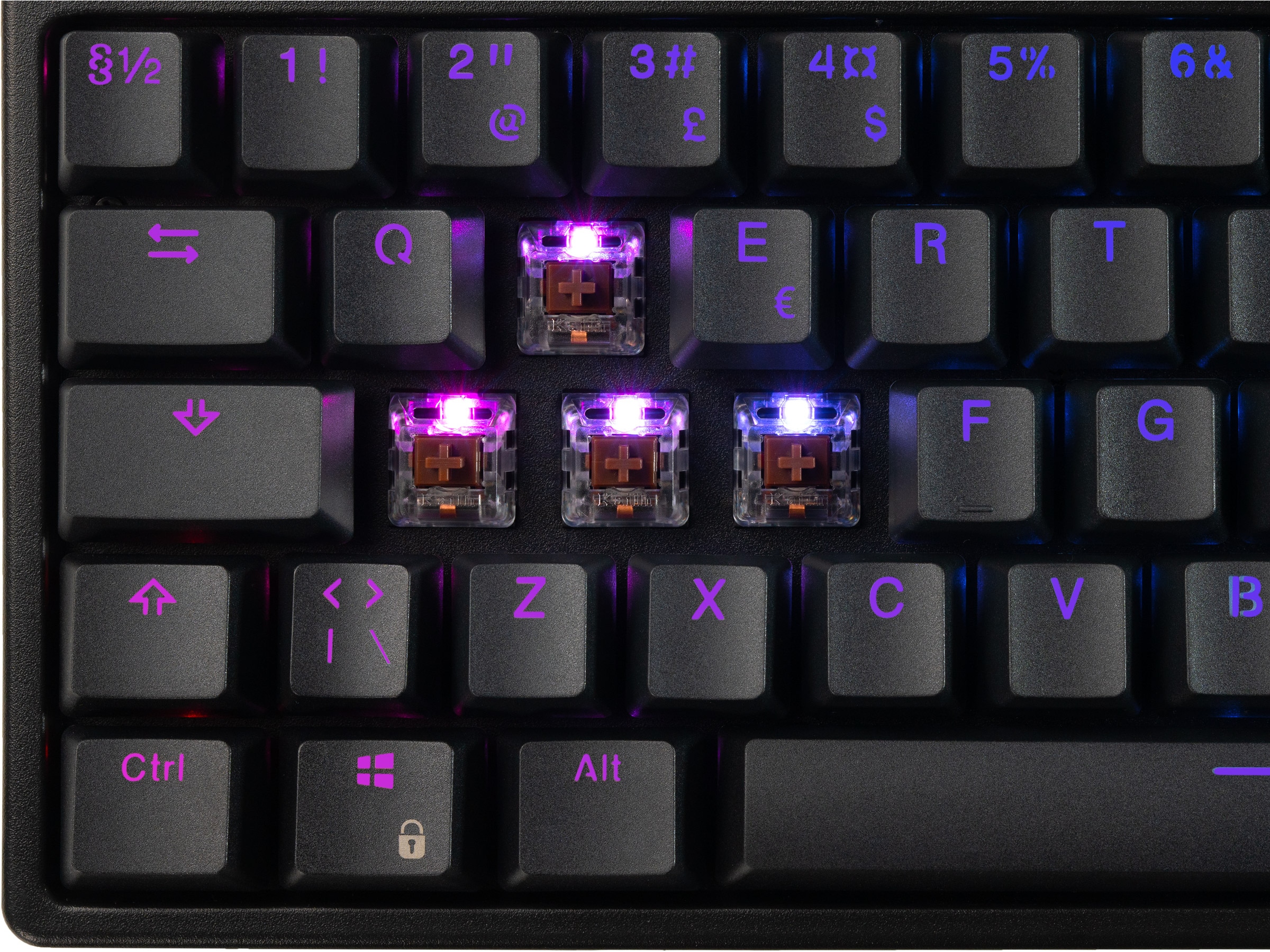 Elsker du den taktile fornemmelse af en mekanisk switch, men hader, hvor meget det larmer? Den meget populære brune mekaniske switch er utrolig pålidelig og præcis, alt imens der ikke kommer nogle kliklyde. Med en levetid på 70.000.000 tastetryk er de brune mekaniske kontakter bygget til pålidelighed og ydeevne i mange år frem. Svive Triton Pro-serien giver dig mulighed for at ændre dine taster, hvilket giver ultimativ tilpasning! Tildel forskellige MX-switche til enhver tast på dit tastatur!