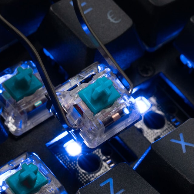 Den blå kontakt giver en kliklyd ved hvert tastetryk, hvilket giver dig betydelig hørbar og taktil feedback. Denne type tast kræver 50 g aktiveringskraft og har en højere nulstillingsposition. Med en levetid på 70.000.000 tastetryk er disse switches bygget til pålidelighed og ydeevne i mange år frem. Svive Triton serien giver dig mulighed for at ændre dine switches, hvilket giver ultimativ tilpasning! Tildel forskellige MX-switche til enhver tast på dit tastatur!