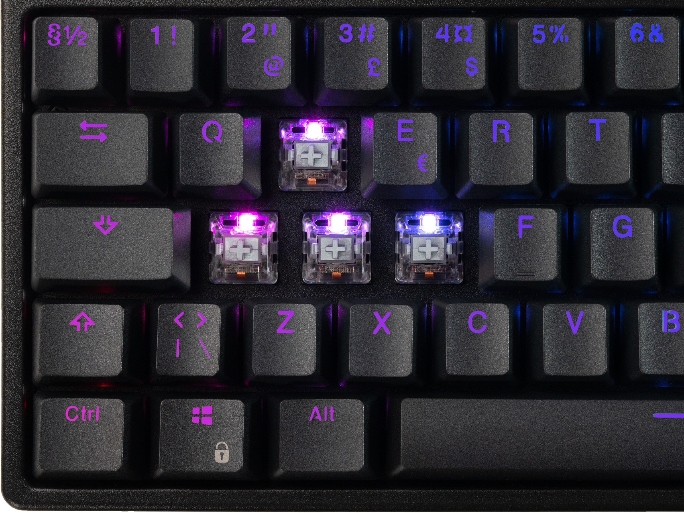 Den lineære sølvfarvede speed-switch aktiveres ved kun 1,1 millimeter. Det giver en meget hurtigere responstid end røde eller blå kontakter giver, hvilket gør dette tastatur perfekt til gaming på konkurrenceniveau. Med en levetid på 70.000.000 tastetryk er disse speed switches bygget til pålidelighed og ydeevne i mange år frem. Svive Triton serien giver dig mulighed for at ændre dine switches, hvilket giver ultimativ tilpasning! Tildel forskellige MX-switche til enhver tast på dit tastatur!