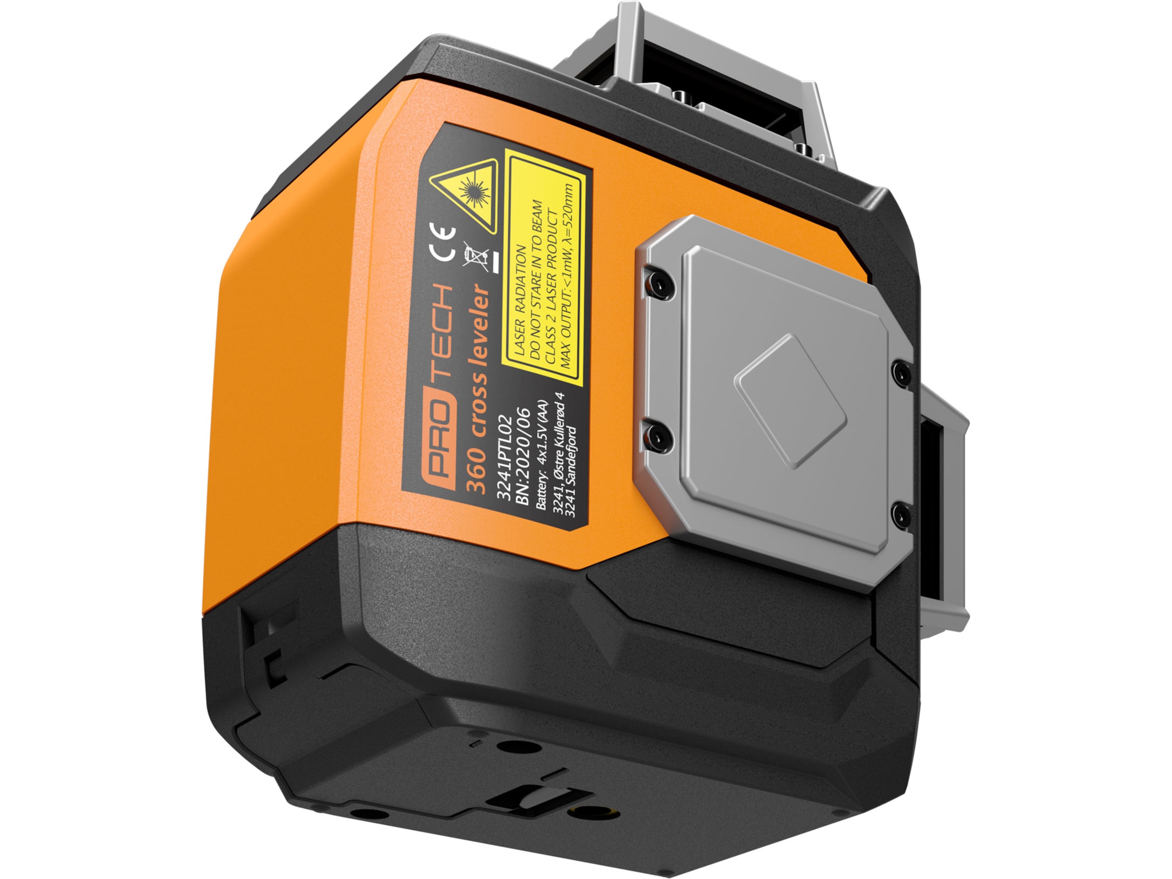 Protech 360° Cross Leveler projicerer sine linjer med stor nøjagtighed på op til ± 0,5 mm/m og sørger for, at begge linjer er præcist nivelleret og lige, hvor du vil have dem. Det tilbyder et arbejdsområde på 20 meter, og dets grønne laser giver dig høj synlighed under alle slags forhold.