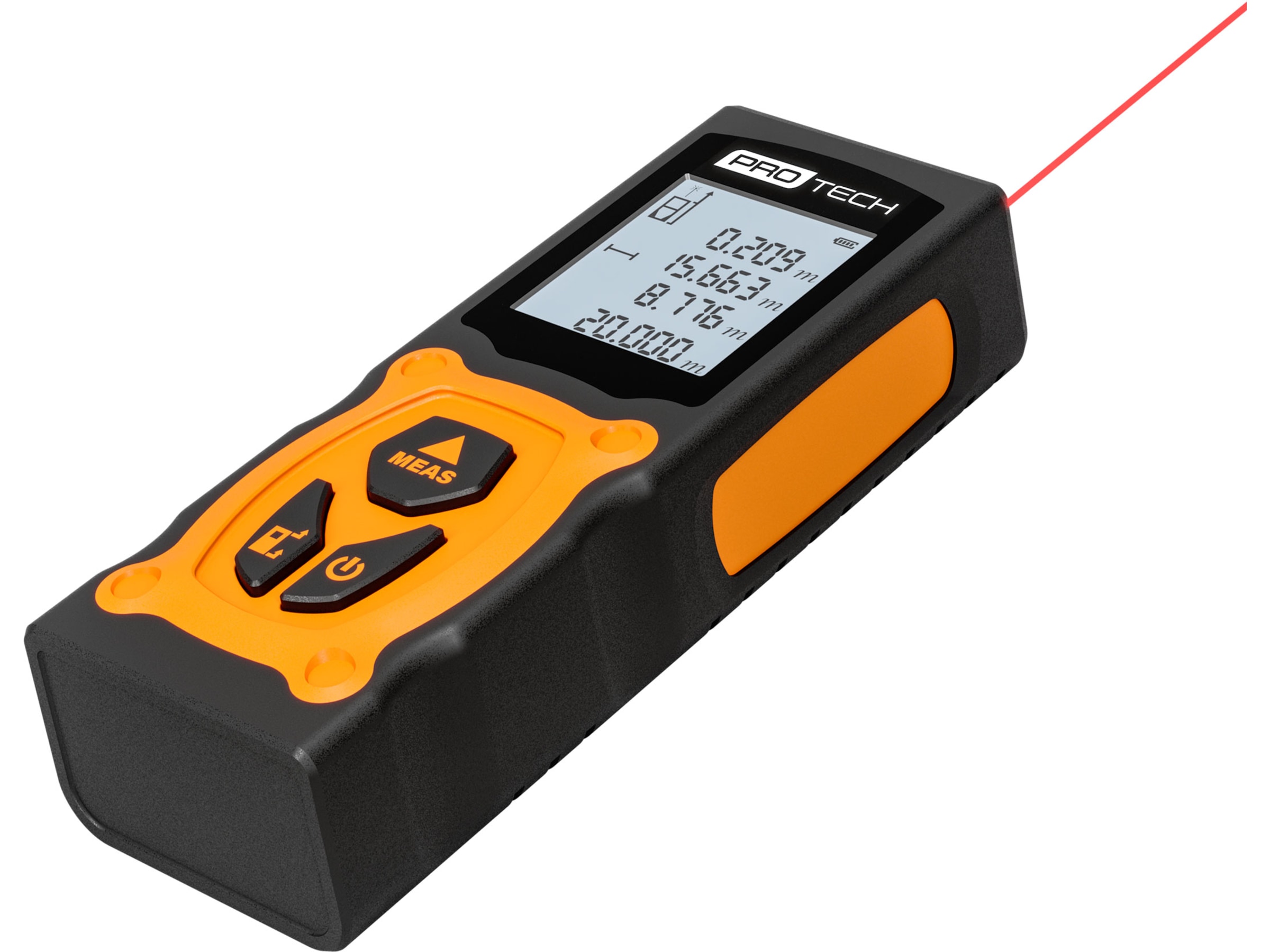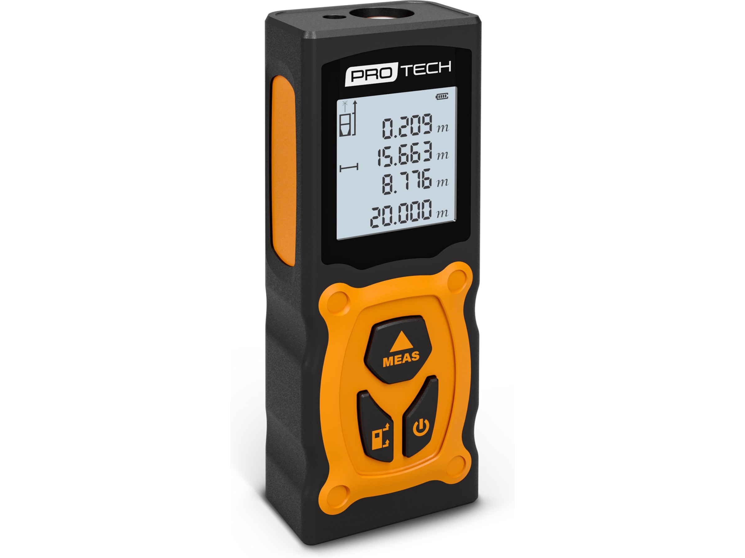 - Protech Range Finder har præcis drift og fungerer med stor nøjagtighed på op til ±0,5 mm/m og sørger for, at alle dine målinger er så præcise, som de kan være. Den tilbyder et måleområde mellem 0,05 og 20 meter, så du kan dimensionere opgaven på få sekunder.