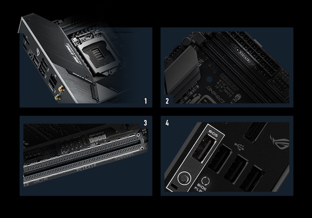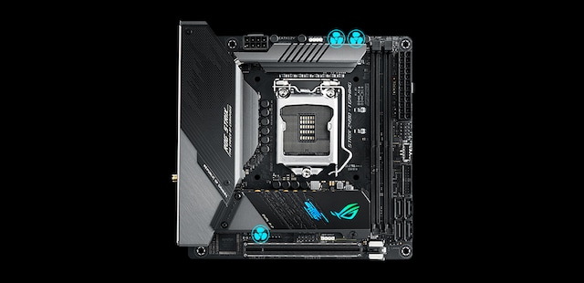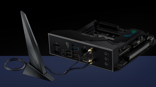 | Inkluderet tilbehør | Kabelbånd, ROG-takkekort, Ekstern antenne, ROG-nøglekæde, ROG-blæsermærkater, RGB Addressable LED-forlængerkabel, 2 x M.2 skruer |