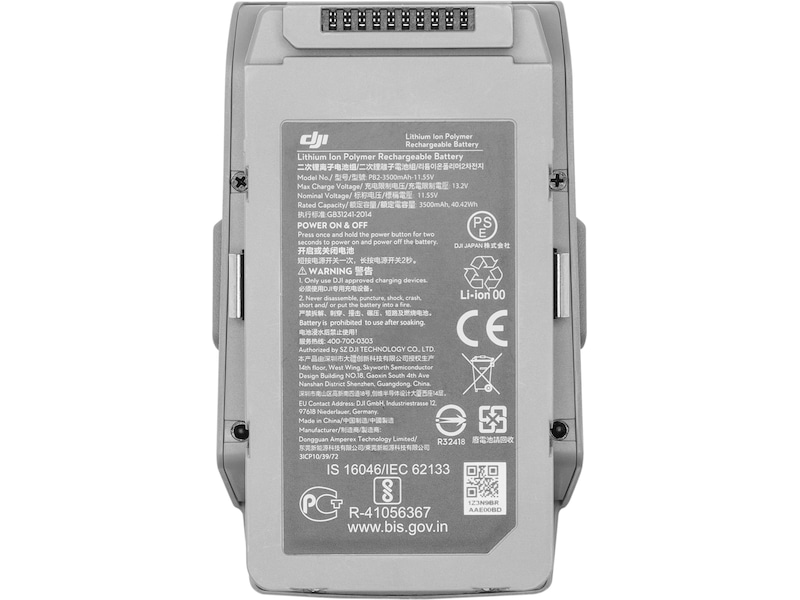 Med et indbygget DJI Intelligent Battery Management System overvåges og rapporteres batteriets status i realtid, så du kan fokusere mindre på strømniveauer og mere på flyvning. Det har også beskyttelse mod overopladning og overdosering samt beskyttelse ved lav temperatur.