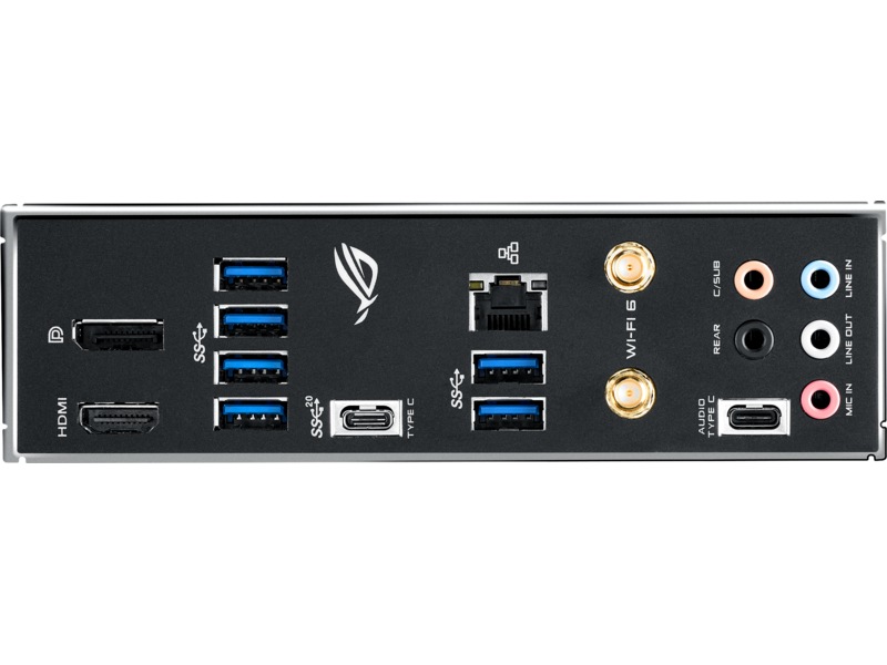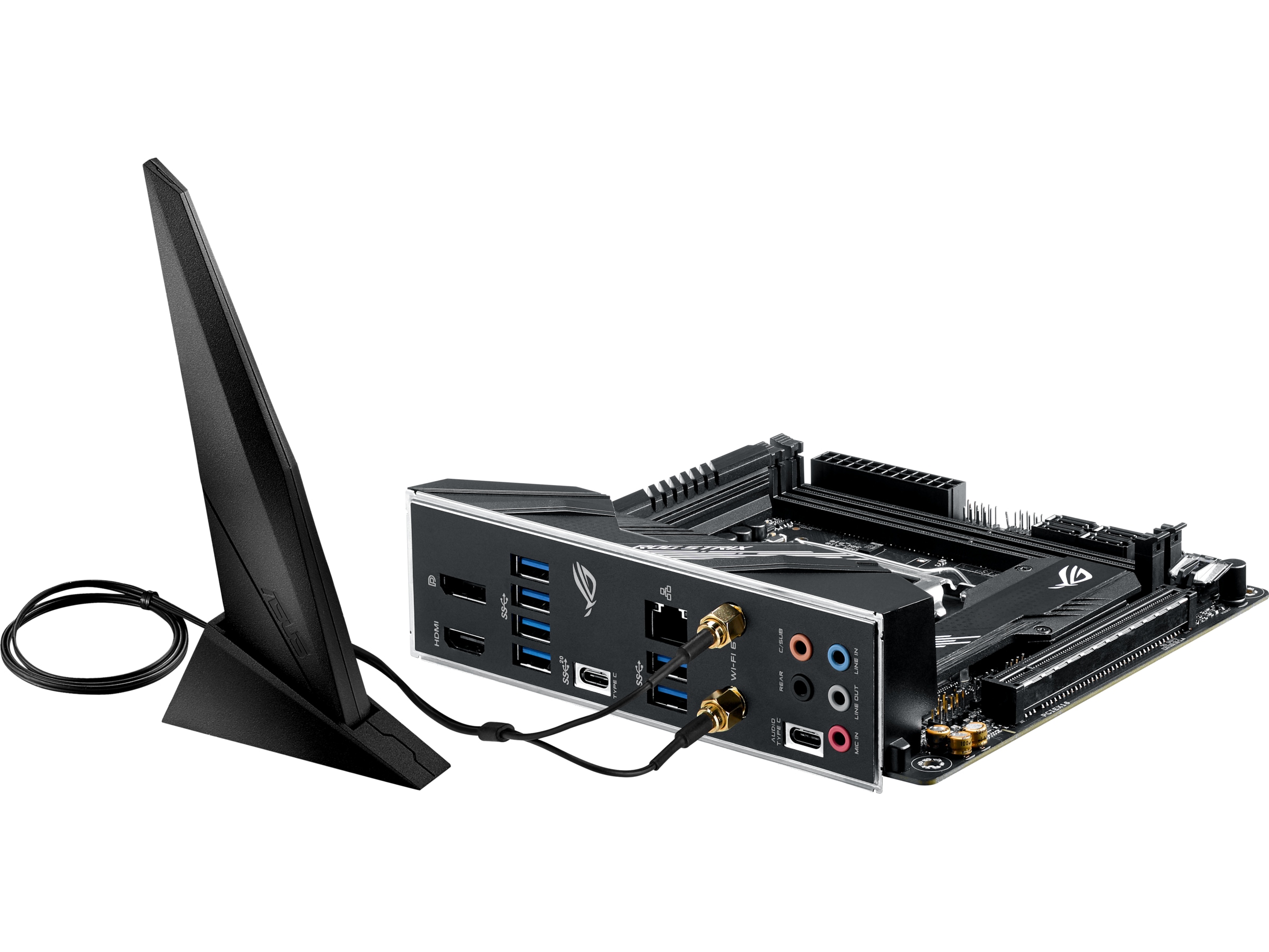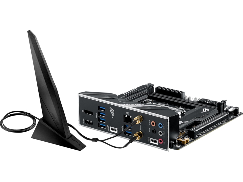| Inkluderet tilbehør | RGB Addressable LED-forlængerkabel, ROG-blæsermærkater, Kabelbånd, ROG-takkekort, ROG-nøglekæde, Ekstern antenne, 1 x M.2 skrue |