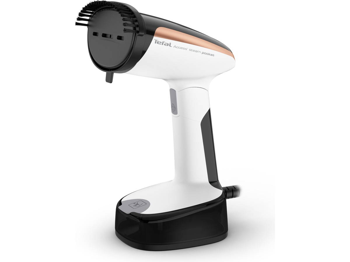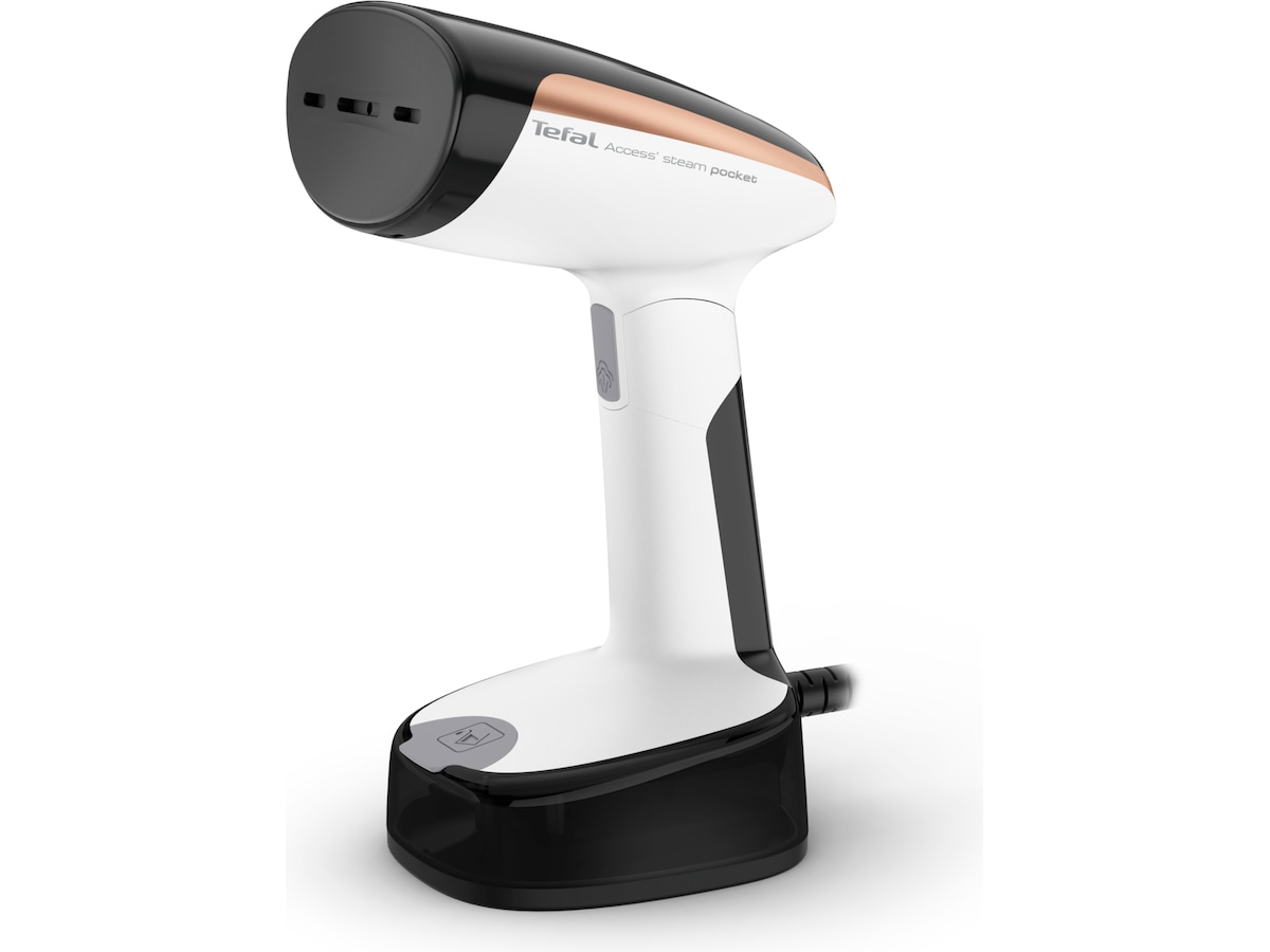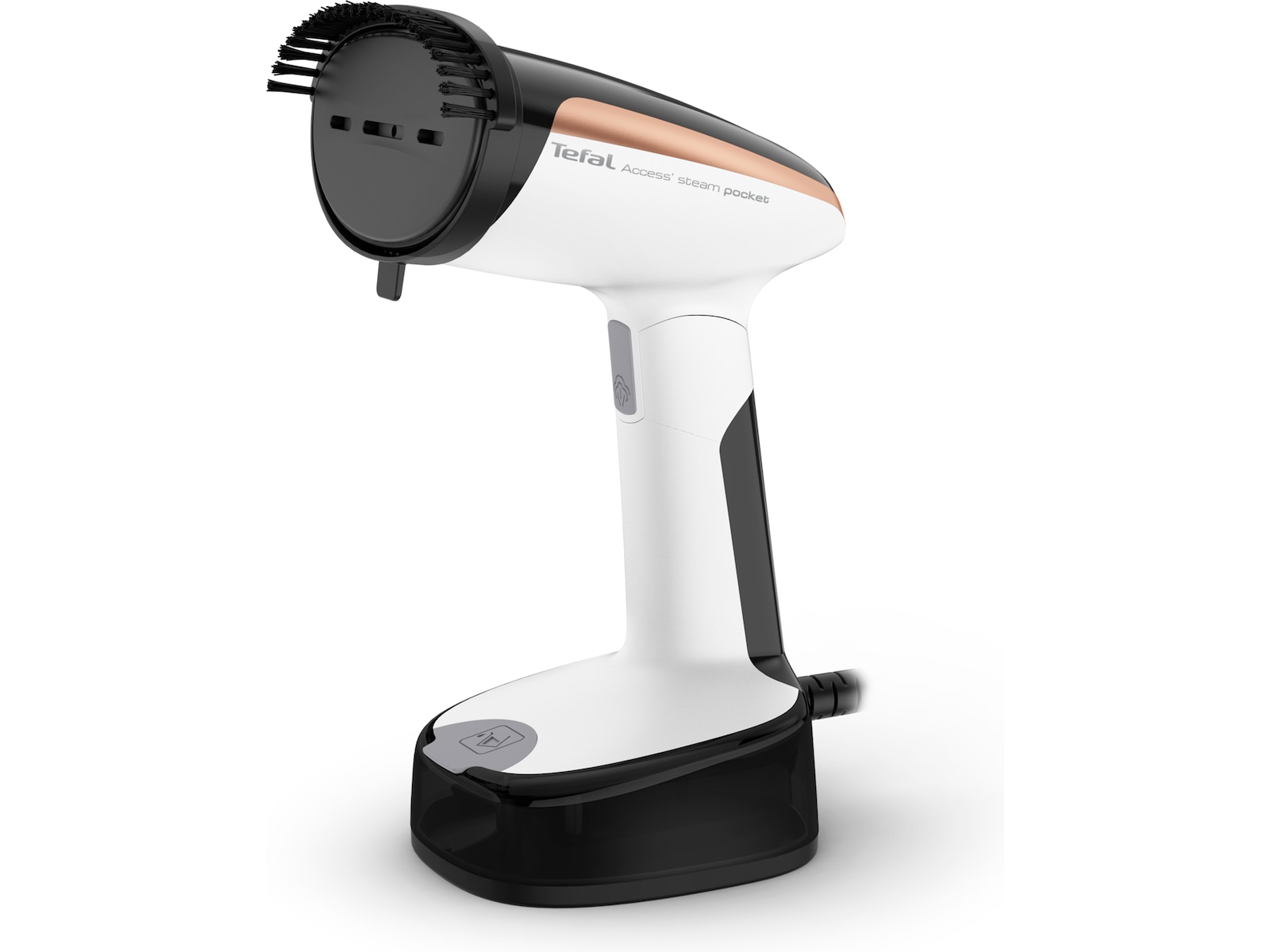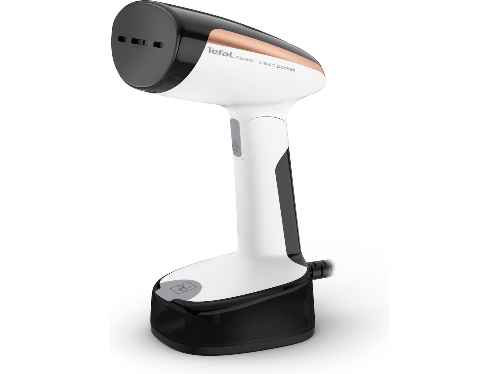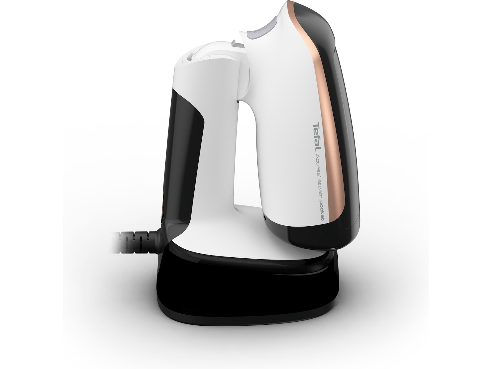 Tefal Access Steam Pocket håndholdte damper muliggør nem tøjvedligeholdelse hjemme og på farten med et sammenklappeligt hoved og et kompakt design, der sikrer en ubesværet rejse og nem opbevaring.