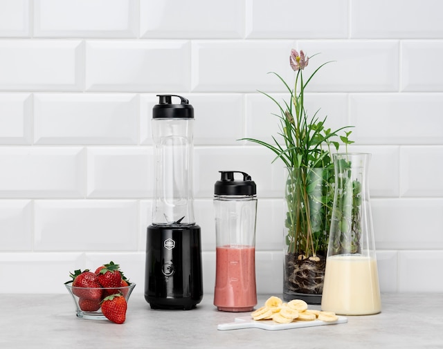 Hvad skal du tage med på farten? Din yndlings-smoothie selvfølgelig! Twister Go er en yderst praktisk smoothie-blender, hvor du kan blende din yndlings-smoothie både hurtigt og nemt. Twister Go er forsynet med pulse-funktion, så du nemt kan knuse frosne bær. Blenderen har et klassisk sort look, kompakt størrelse og er meget praktisk, så den passer perfekt ind i din travle hverdag. Da blenderen har 2 flasker med drikketud, bliver det ikke nemmere at lave en smoothie og tage den med på farten!