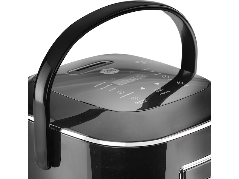 Hvis maden skulle blive færdig før tid, holder multicookeren den automatisk varm. Alt er samlet i et enkelt, sort design og er forsynet med et håndtag, så den nemt kan flyttes og opbevares. Den egner sig altså perfekt til alt tekøkkenet til campingvognen.