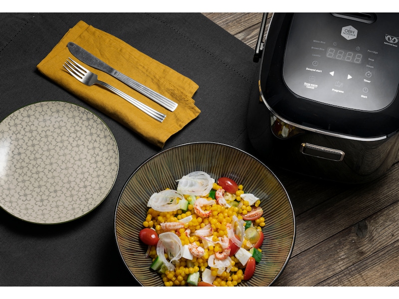 Multicookeren har 6 forudindstillede kogeprogrammer til forskellige ingredienser samt en dampkurv. Med dette fleksible system kan du eksempelvis koge ris i skålen, mens du damper grøntsager og laks i dampkurven samtidig.