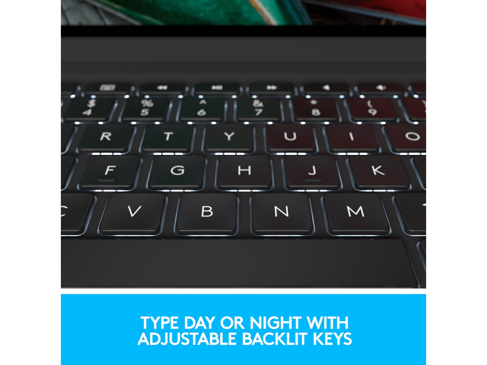 Kan du lide at bruge iPad Pro om natten eller i svag belysning? Det gør vi også. Derfor er det integrerede tastatur udstyret med baggrundsbelyste taster. Tre justerbare lysstyrkeniveauer giver dig mulighed for at se, hvad du laver, uanset om du er i soveværelset, i et fly eller i andre miljøer med lavt lys.