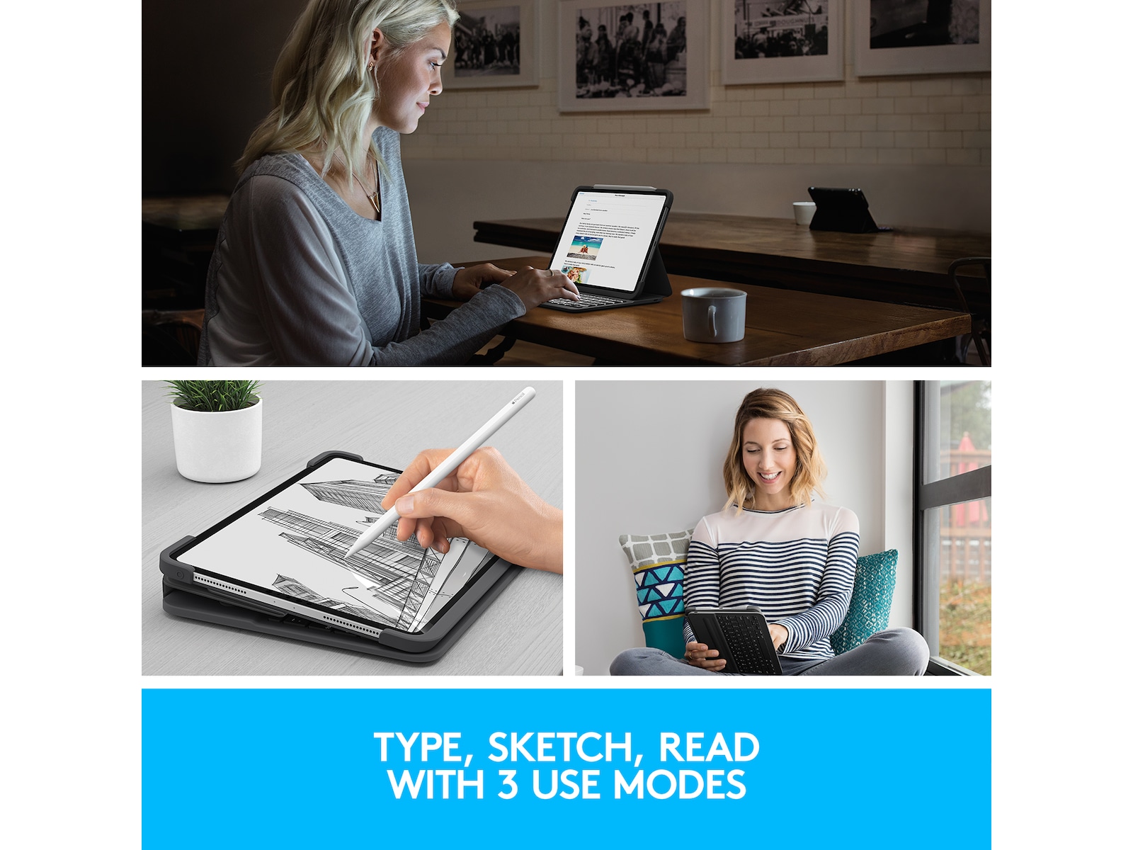 Slim Folio Pro tilbyder tre unikke tilstande, så du kan udføre alle slags opgaver mere effektivt.