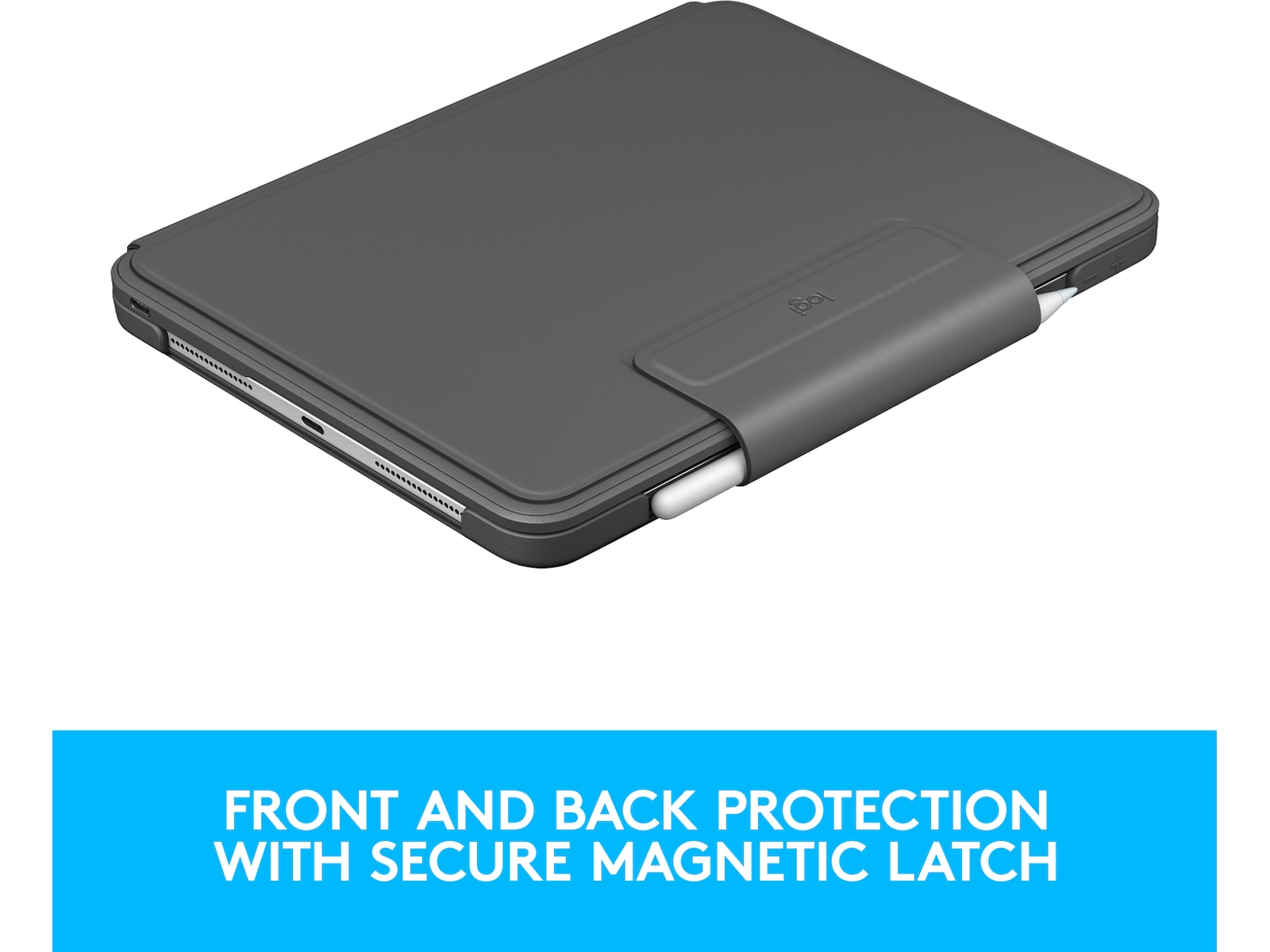 En sikker magnetlås holder etuiet sikkert lukket, når det ikke bruges til at beskytte iPad-skærmen. Låsen har også en praktisk rem til opbevaring af Apple Pencil (2. gen) og andre digitale blyanter.