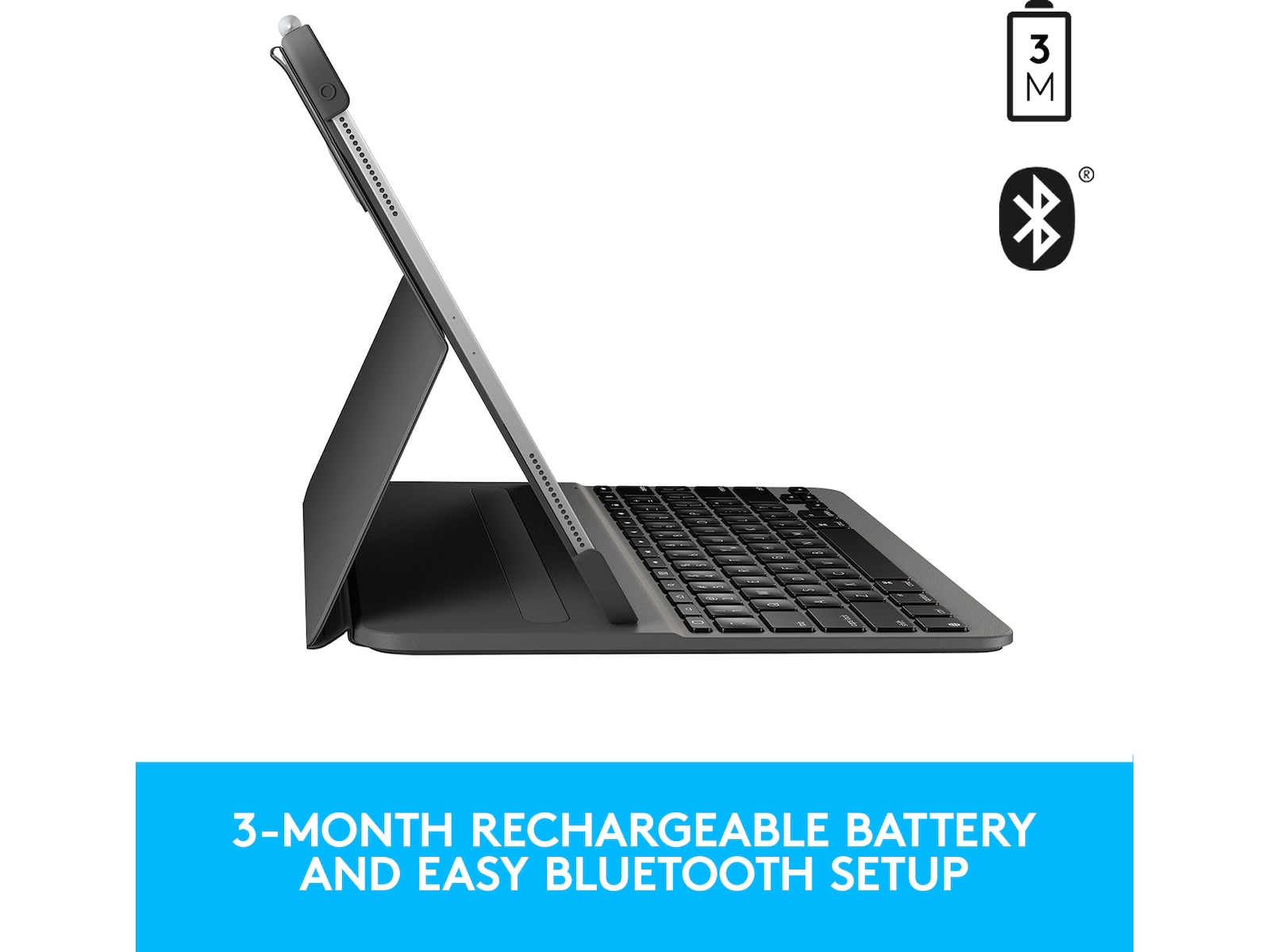 Med den indbyggede automatisk tænd/sluk-funktion kan du blot sætte iPad'en i skrivetilstand for at tænde for tastaturet. Fjern derefter iPad Pro fra docken, så tasterne kan hvile. Dette sparer strøm, så du kan skrive længere mellem opladningerne.