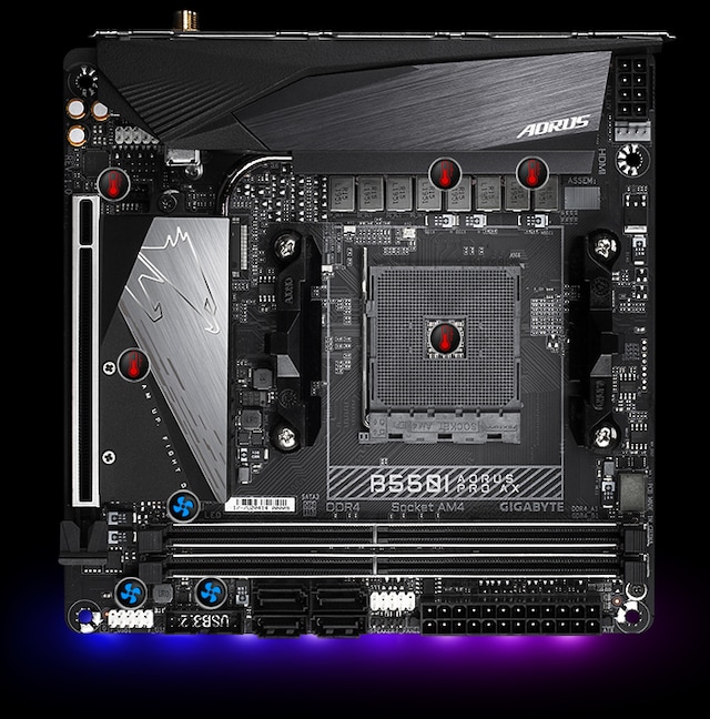 Uforstyrret ydeevne er garanteret af den avancerede termiske løsning, der inkluderer VRM heatsink, heatpipe, thermal guards og baseplate. B550 AORUS bundkort er kølige på MOSFET'er og M.2 SSD'er, selv ved fuld belastning. Det giver lavere temperaturer for entusiaster, overklockere og professionelle spillere.