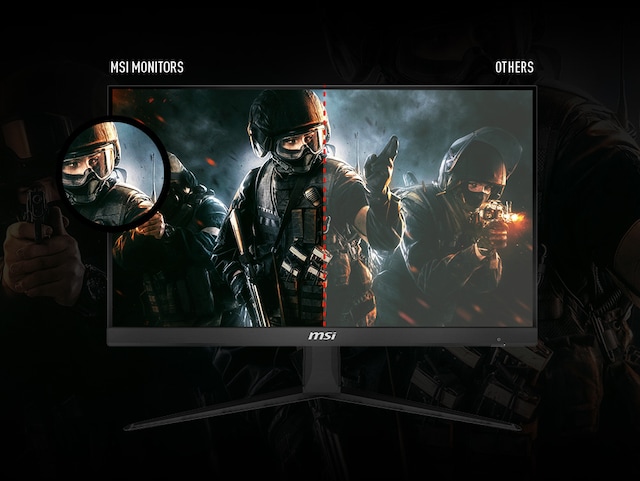 | Monitor-egenskaber | Rammeløst kantdesign, 3-sidet kantløs, MSI Anti-Flicker, Nattesynstilstand, Blålys-reduktion, Bredt farvespektrum |