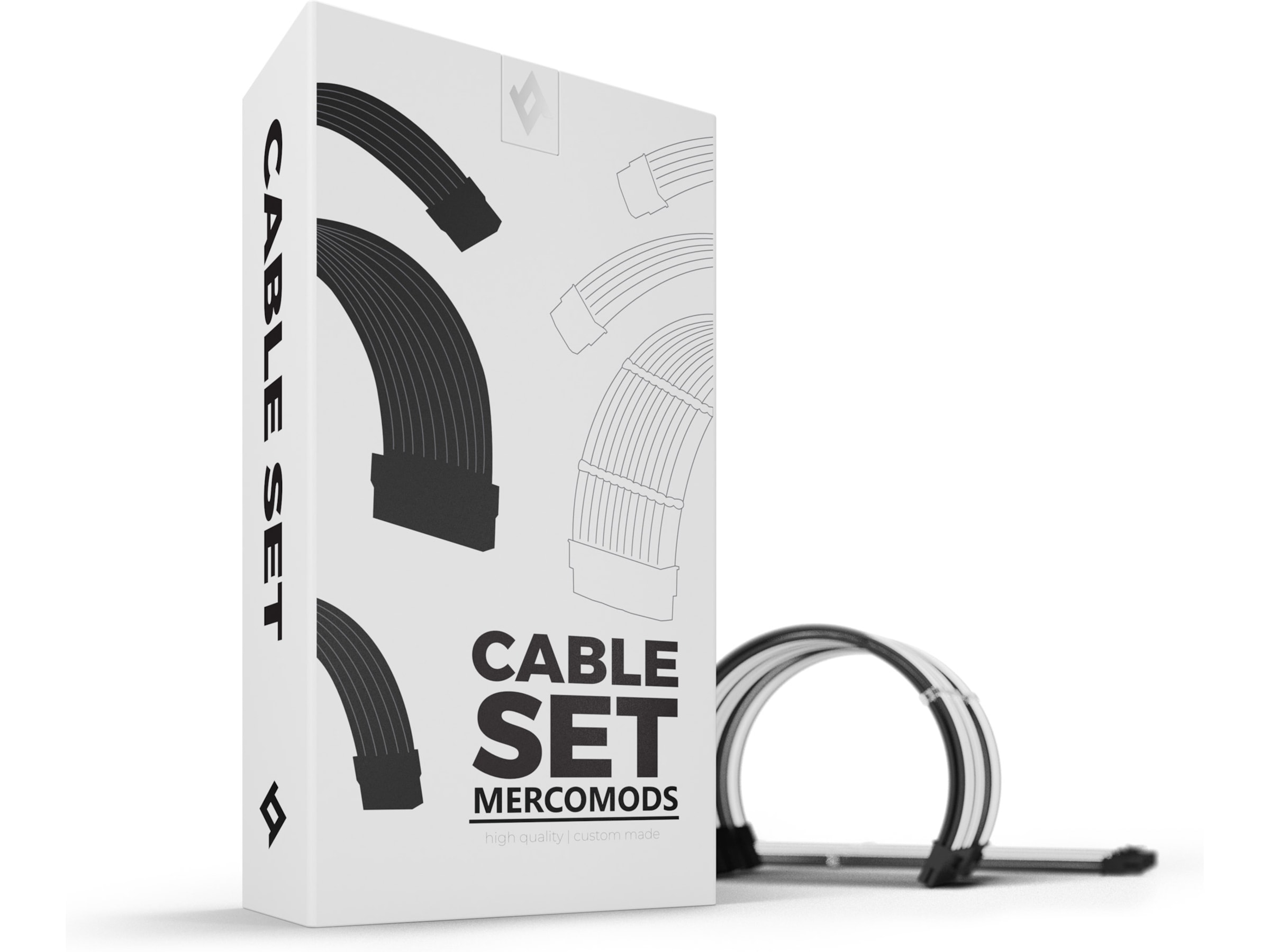 Hvert MercoMods-forlængerkabelsæt inkluderer 1x24-pin (bundkort), 3x8-pin PCI-E (GPU), 1x6-pin PCI-E (GPU), 1x8-pin EPS (CPU)-kabler. Dette gør det kompatibelt med næsten enhver PC, inklusive den nye 6000-series AMD- og 30-seriens Nvidia-kort.