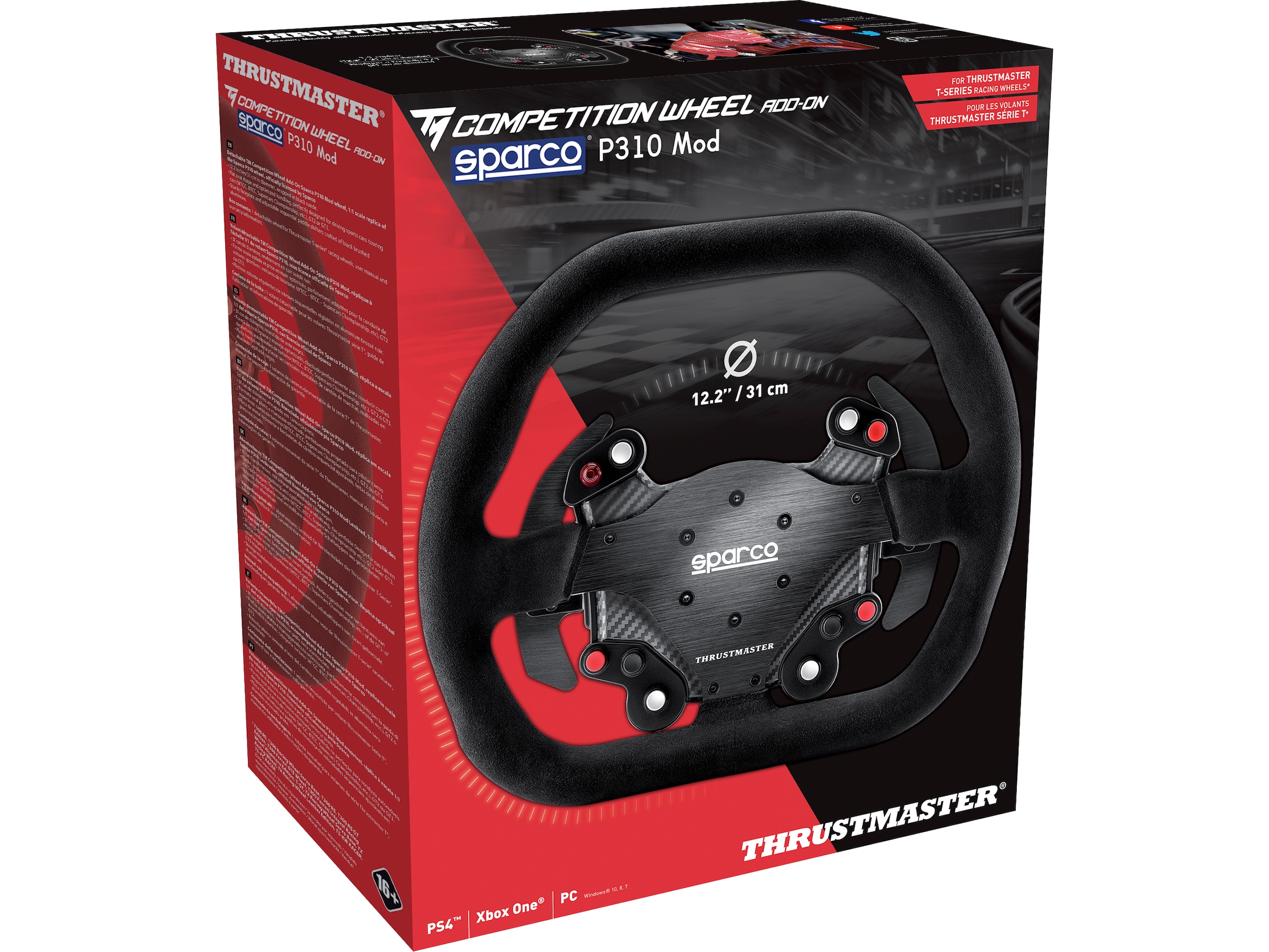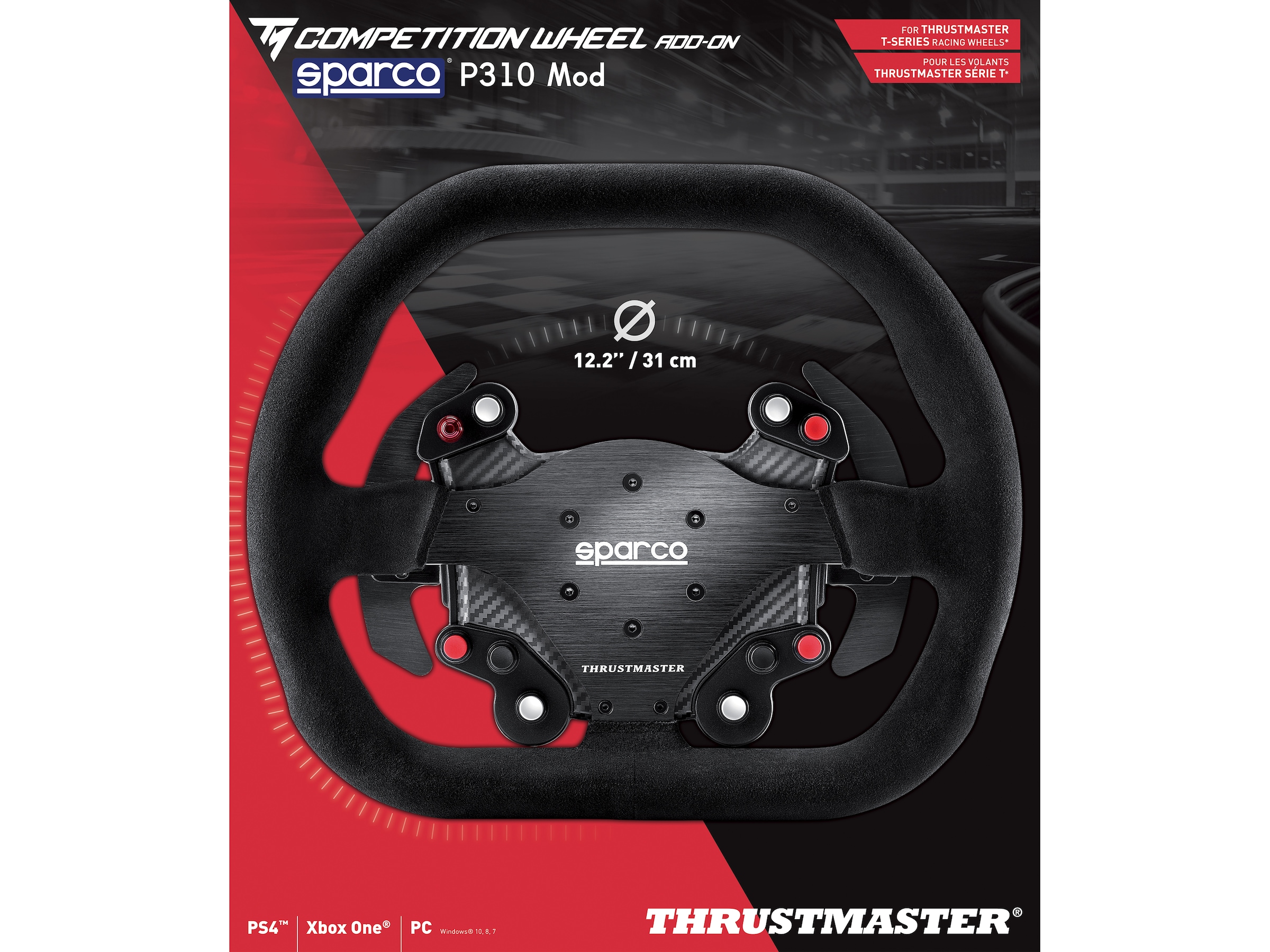 TM COMPETITION WHEEL Add-On Sparco P310 Mod er designet med brug af multiplatform i tankerne (PC/PS4/Xbox One) og er kompatibel med alle Thrustmaster T-Series racing-ratbaser: TX og T300 servobaser, T-GT, TS-XW og endda TS-PC Racer (sælges separat).