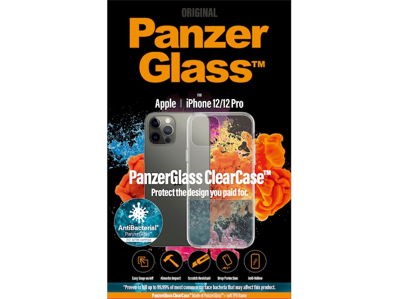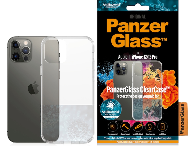 PanzerGlass™ ClearCase™ til Apple iPhone 12/12 Pro beskytter det smukke design, du har betalt for, samtidig med at den giver kompromisløs beskyttelse mod fald, støv og ridser. Lavet med PanzerGlass™ + en blød TPU-ramme ClearCase™ passer lige over knapperne for nem og fuld adgang til alle funktioner. ClearCase™-belægningen forhindrer misfarvning og påvirker ikke den trådløse opladning. Endelig har ClearCase™ en perfekt justering med en PanzerGlass™-skærmbeskytter.