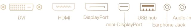 - Omfattende tilslutningsmuligheder for maksimal fleksibilitet, inklusive Mini DisplayPort, DisplayPort, HDMI, dual-link DVI-D, lydindgang og øretelefonstik plus fire USB 3.0-porte