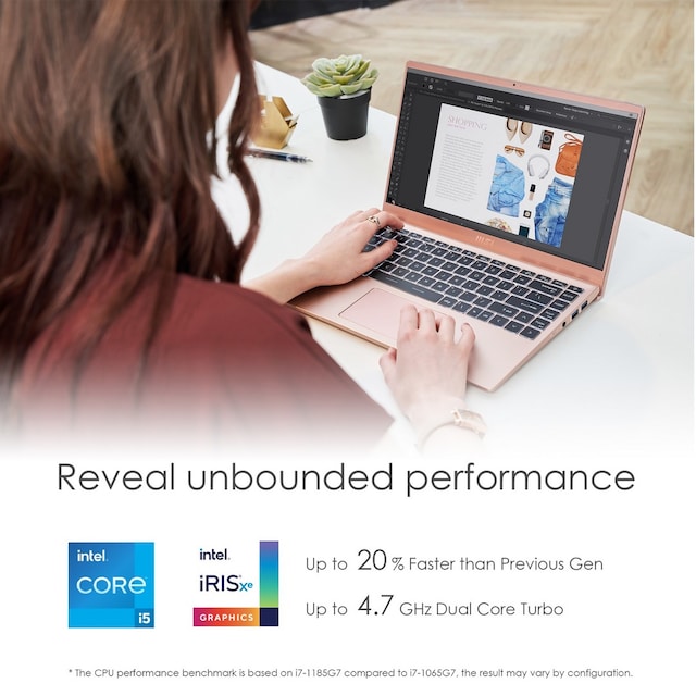 Modern-serien har den nyeste 11. Intel Core i5-processor, der leverer fantastisk ydeevne og let bærbarhed, der fastholder dig i arbejdsgangen problemfrit. Især med Intel Iris Xe -grafik giver den kompromisløs ydeevne for at styrke din produktivitet.*