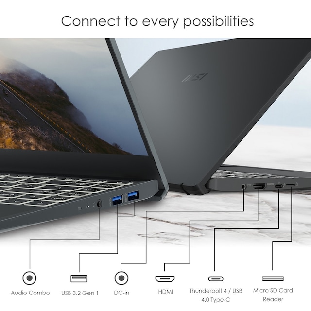 Udstyret med to USB-A og Thunderbolt 4-port er det lettere at forbinde enheder. Med micro SD-kortlæser og HDMI-output kan du tage levende billeder uden besvær og nyde mange forskellige oplevelser i livet.